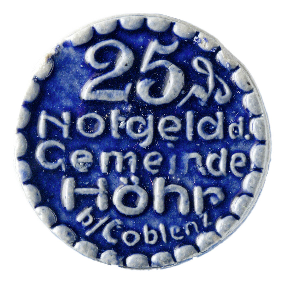 Vijfentwintig pfennig (noodmunt) uit Höhr, met blauw...