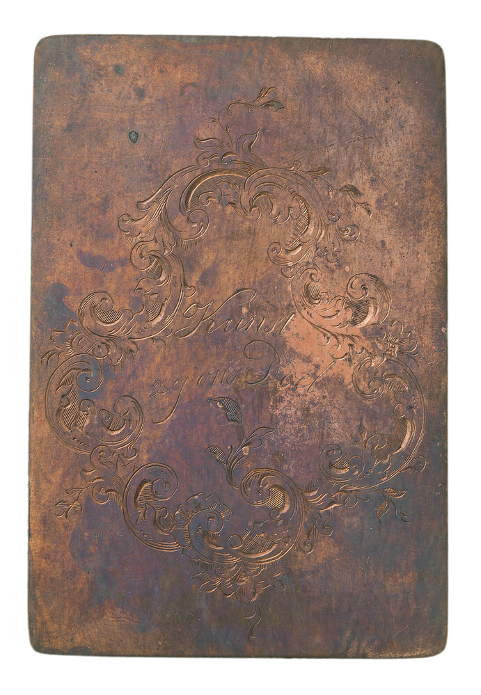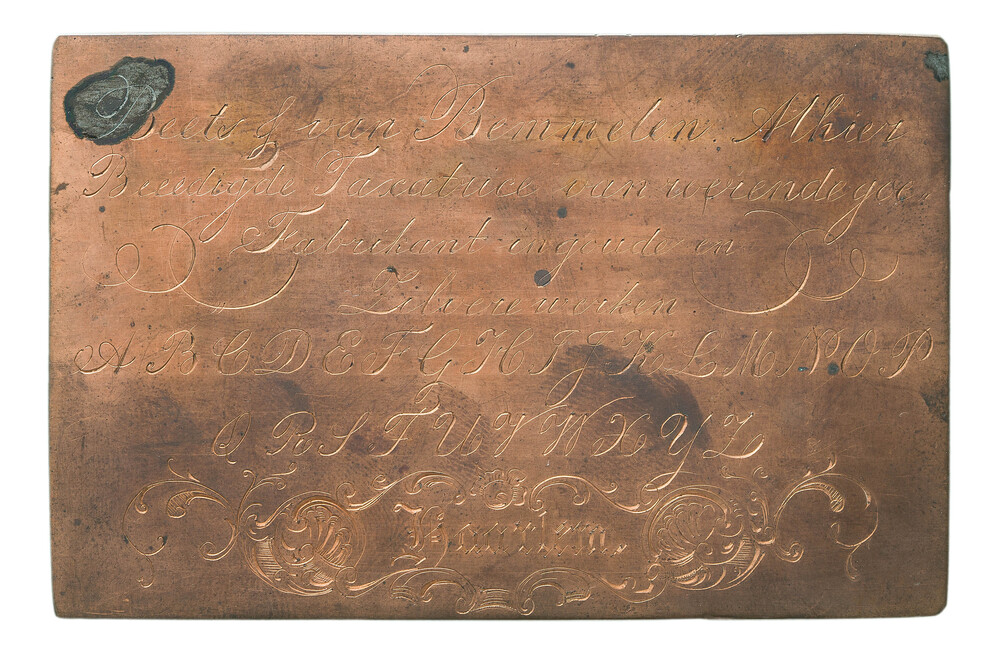 Metalen plaatje, gegraveerd door Elias Voet junior