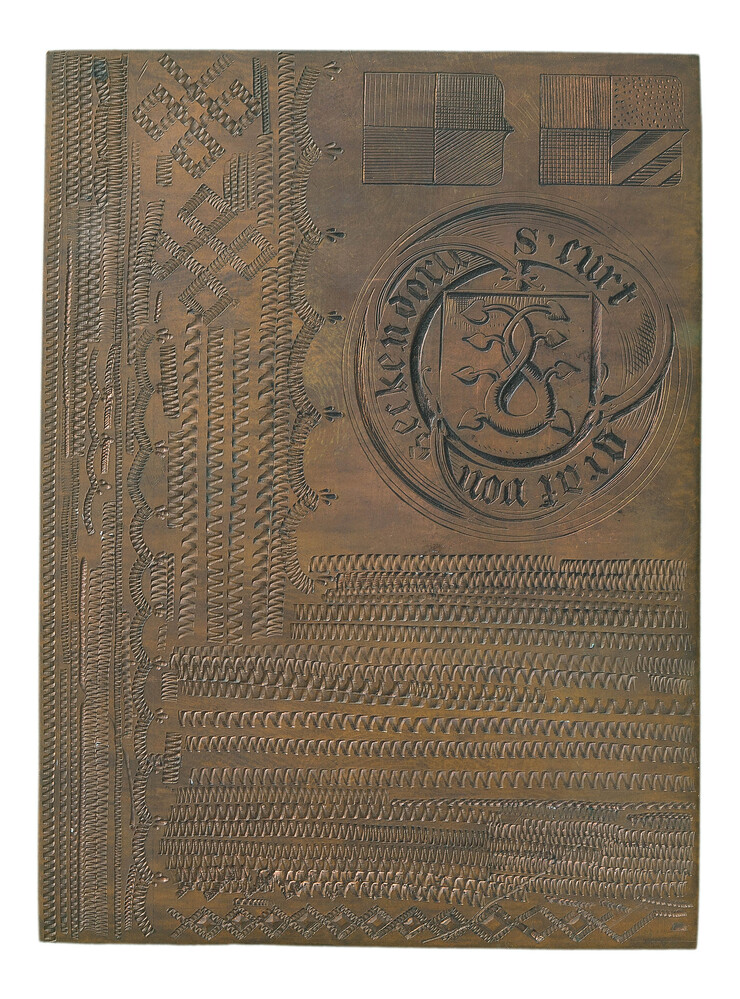 Metalen plaatje mogelijk gegraveerd door Hermann Sch...