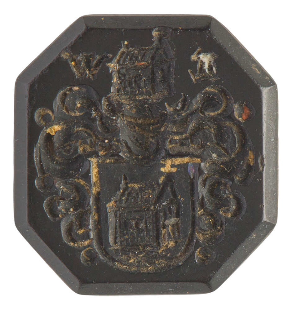 Gesneden steen met wapenschild en huismerk