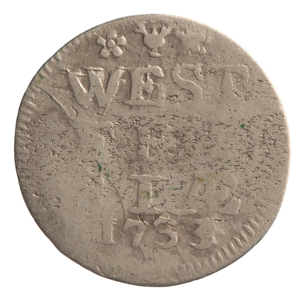 Dubbele stuiver van West-Friesland met gewijzigd jaa...