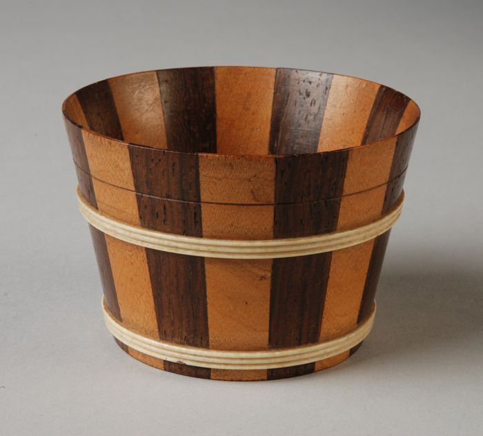 Gestreept rond houten bakje voor wol