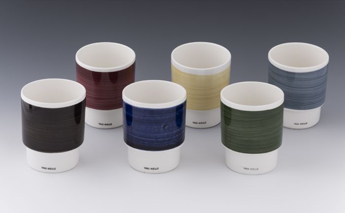 Zes witte bekers van Van Nelle, met verschillende kl...