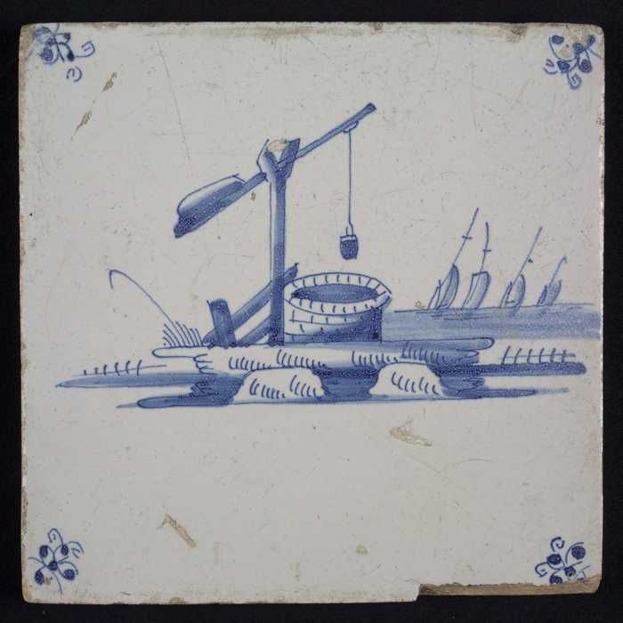 Tafereeltegel, blauw, waterput, hoekmotief spin