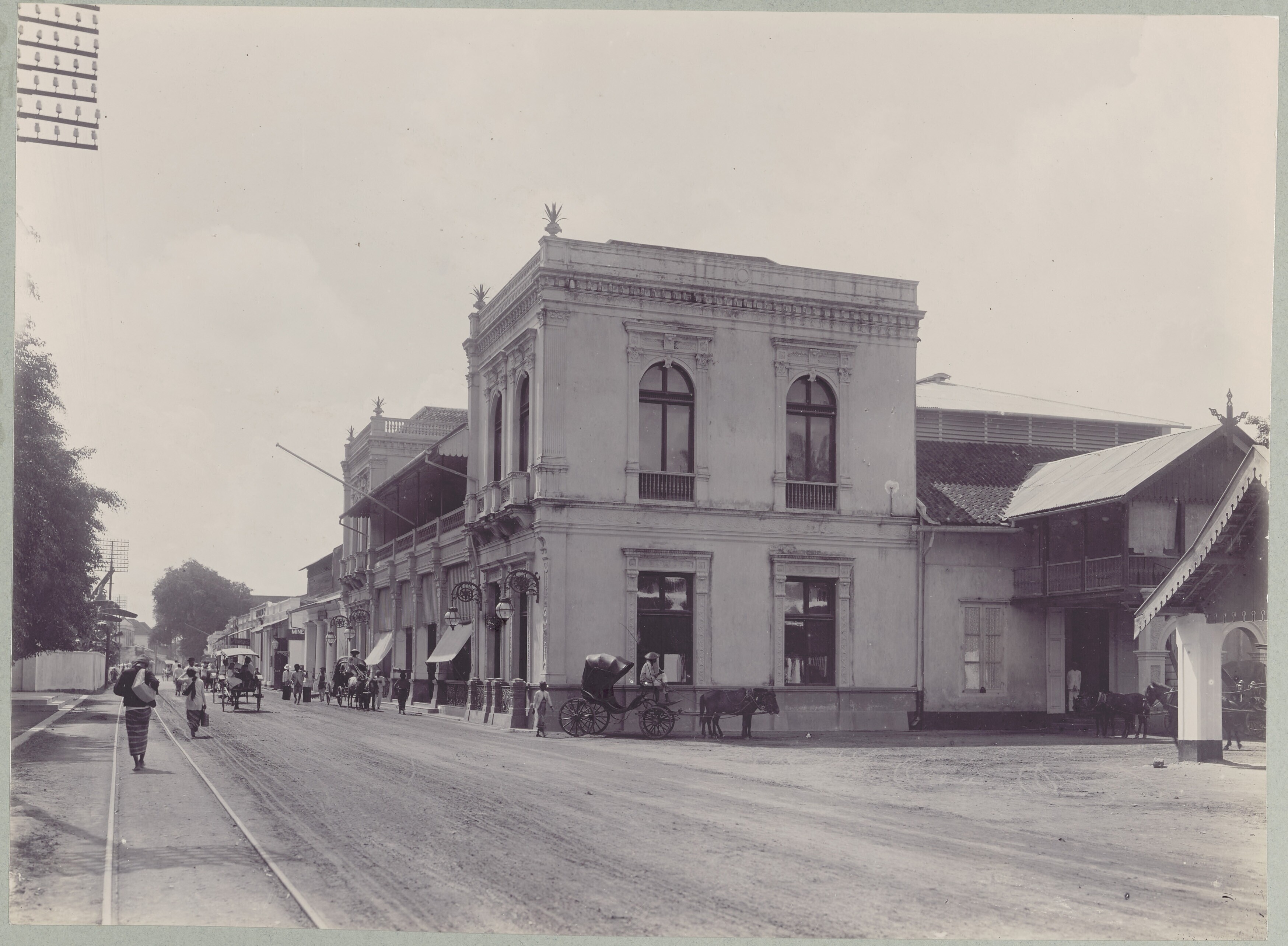 Gezicht op een straat te Surabaja met het gebouw van...