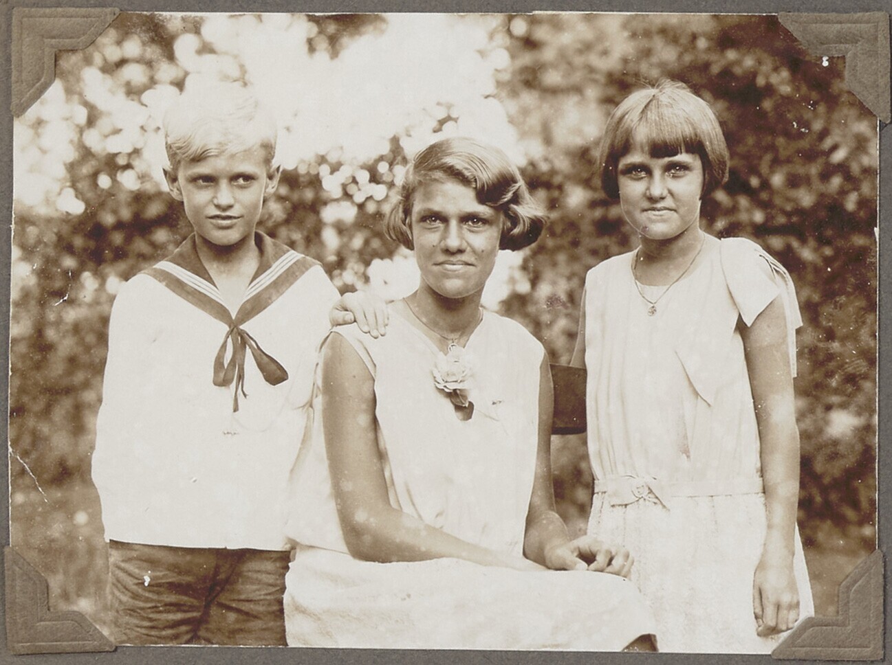 Portret van twee Europese en een Indo-Europees kind