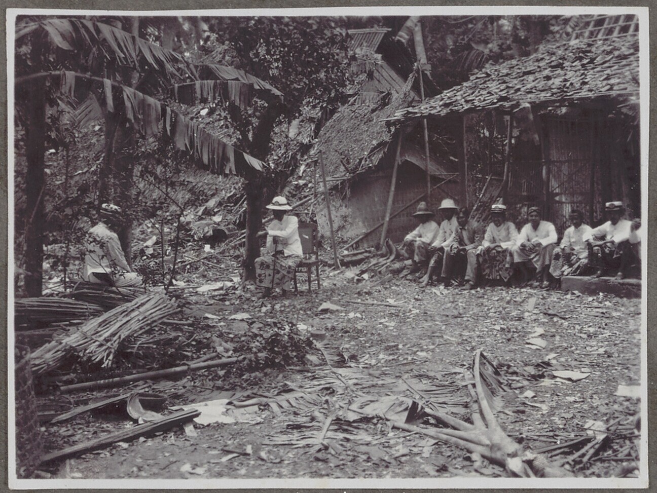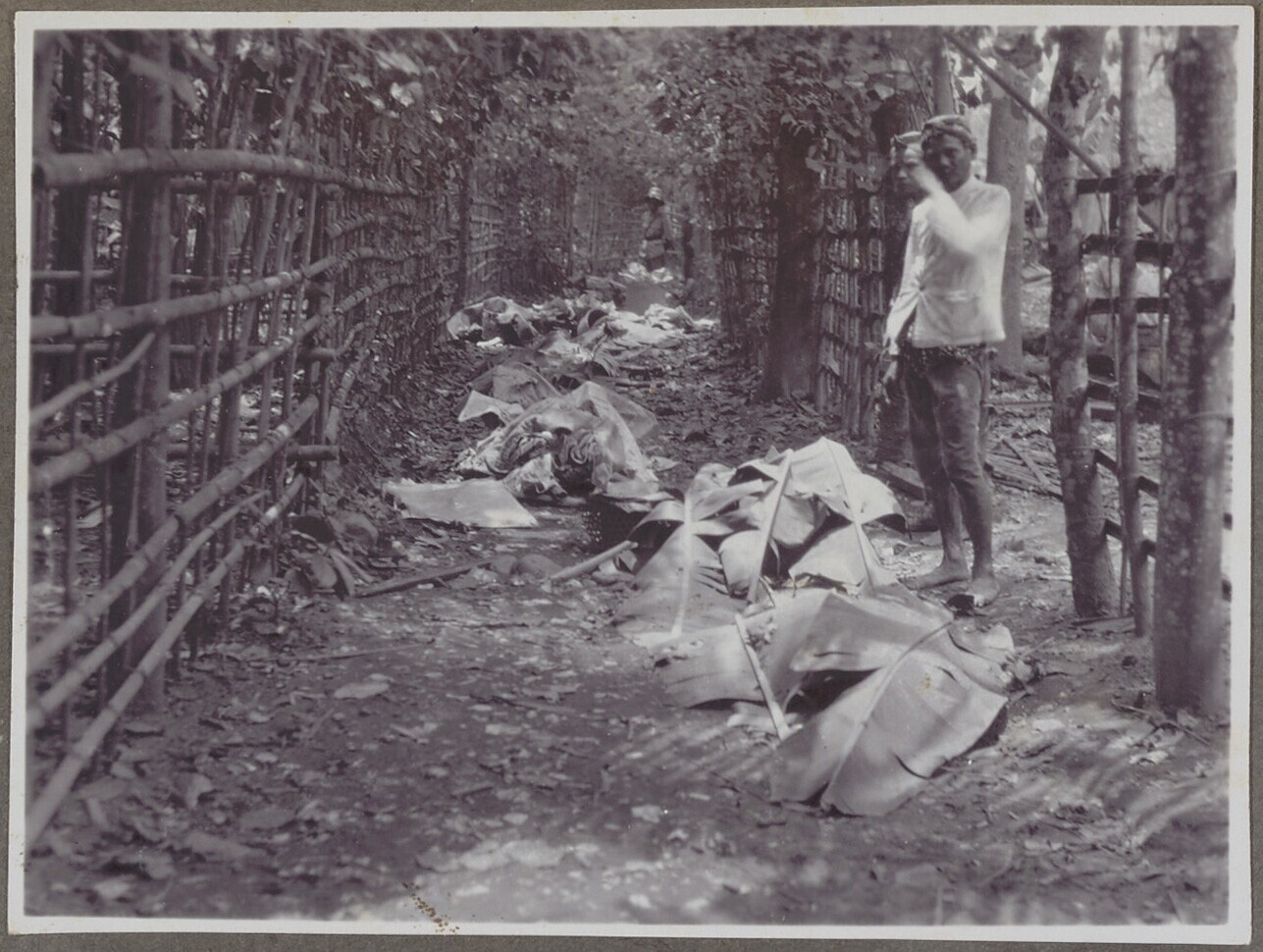 Twee Javanen bij de met bananenbladeren toegedekte s...