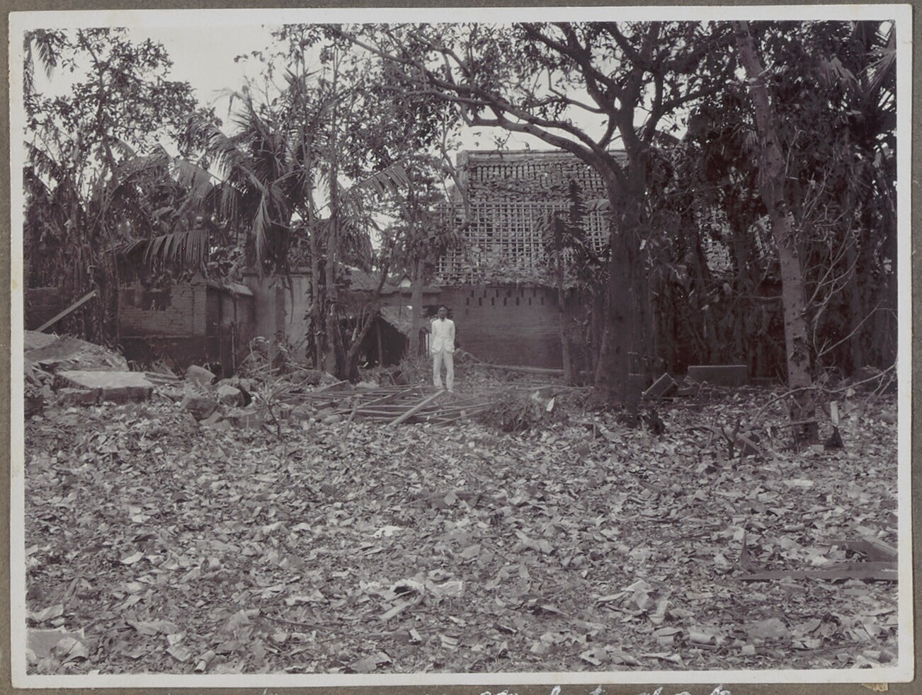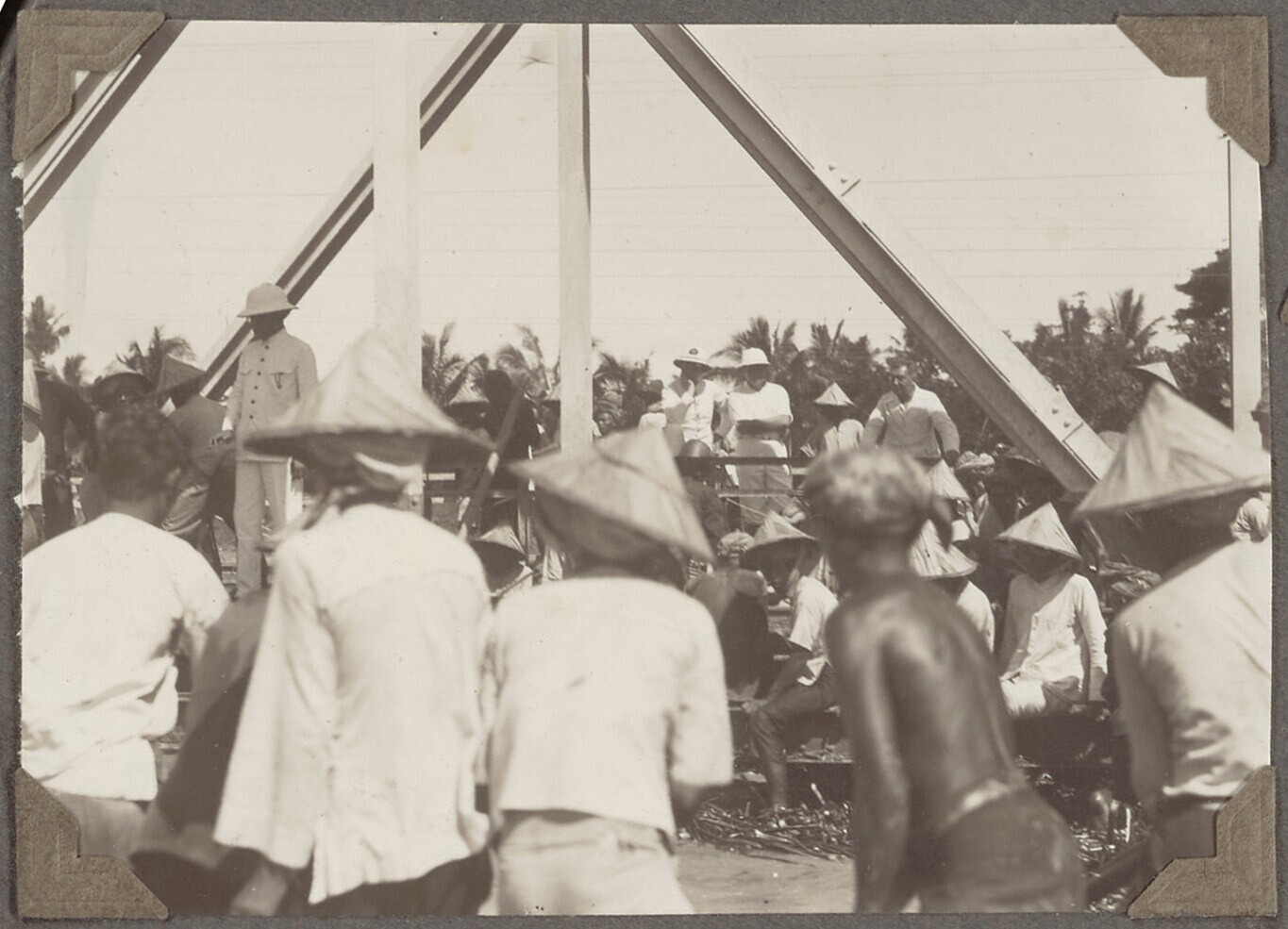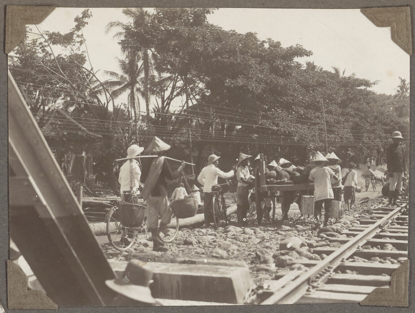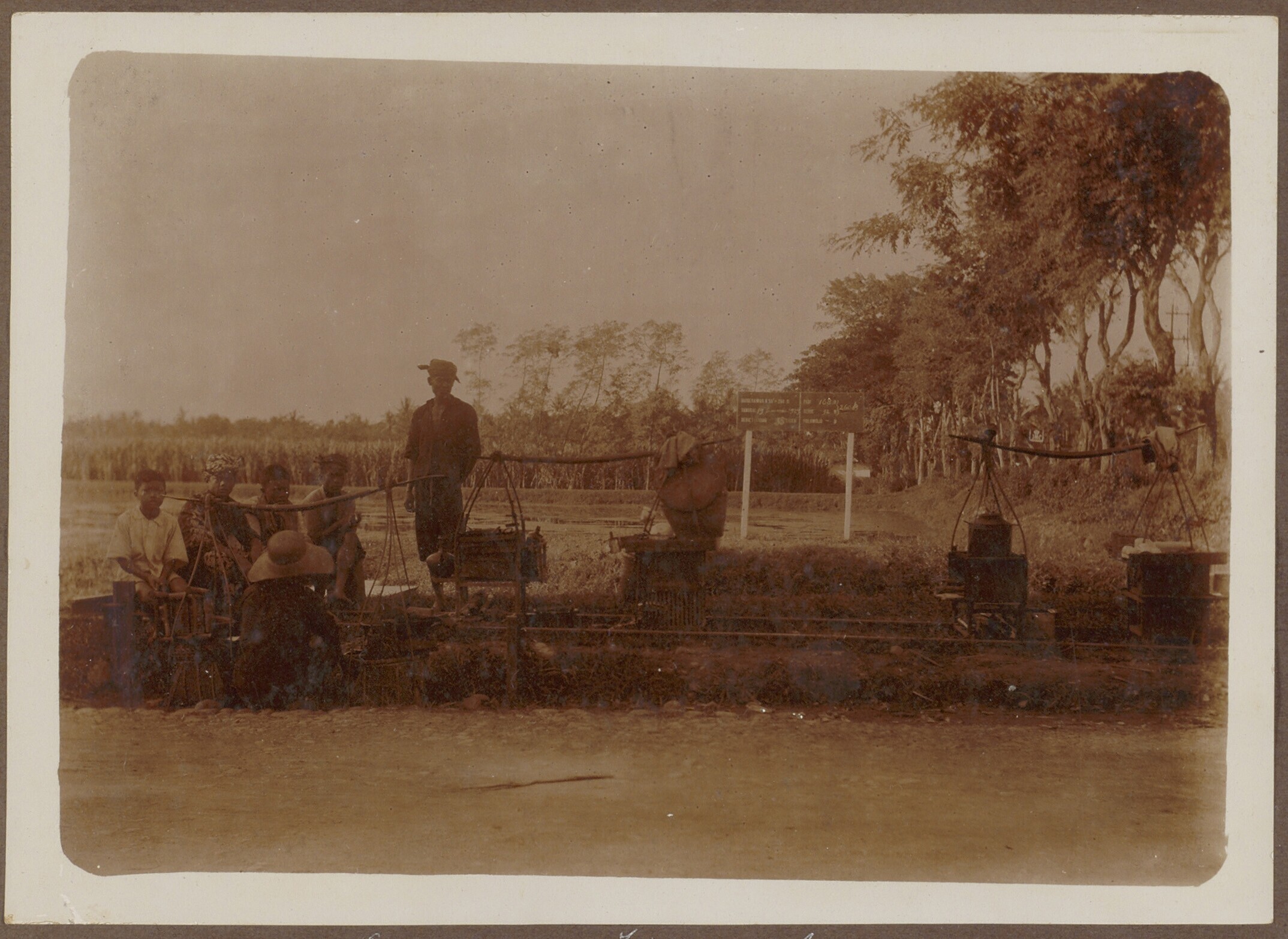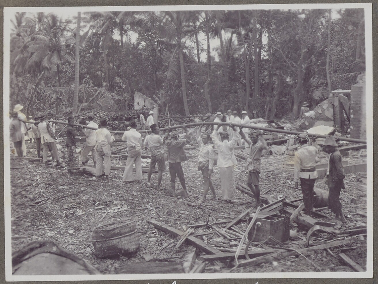 Groep Javaanse arbeiders bezig met het vrijmaken van...