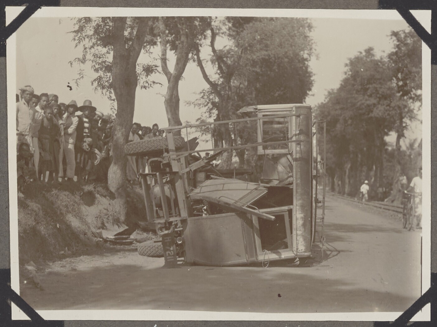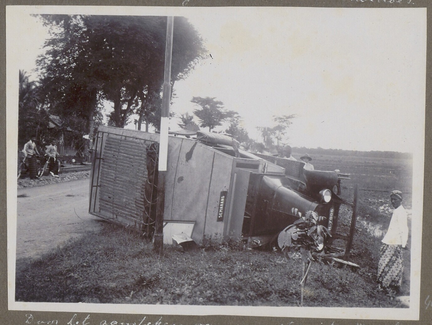 Verongelukte auto in de berm met Javanen ernaast