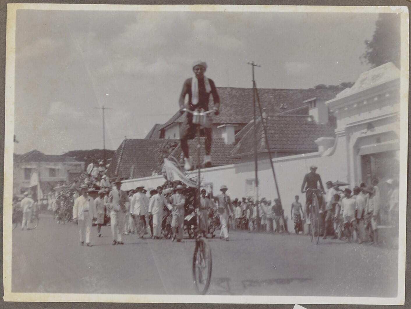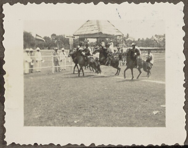 Groep Europese en Javaanse mannen tijdens optocht na...