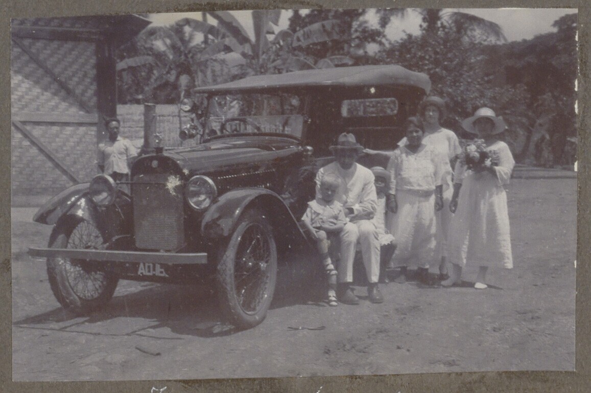 Javanen en Europeanen bij een auto