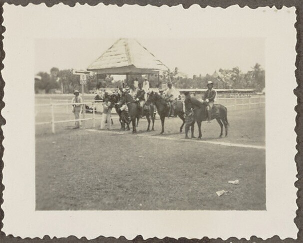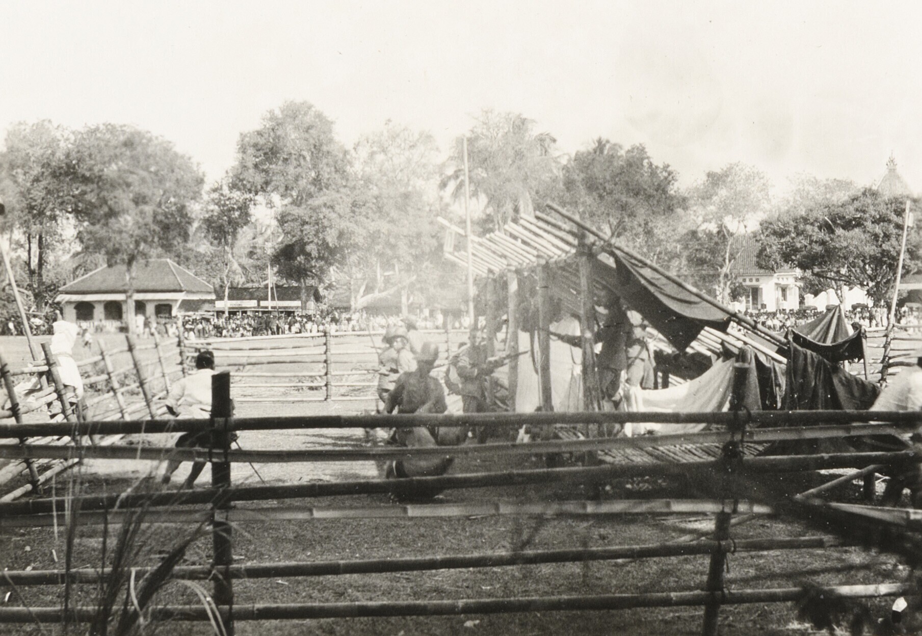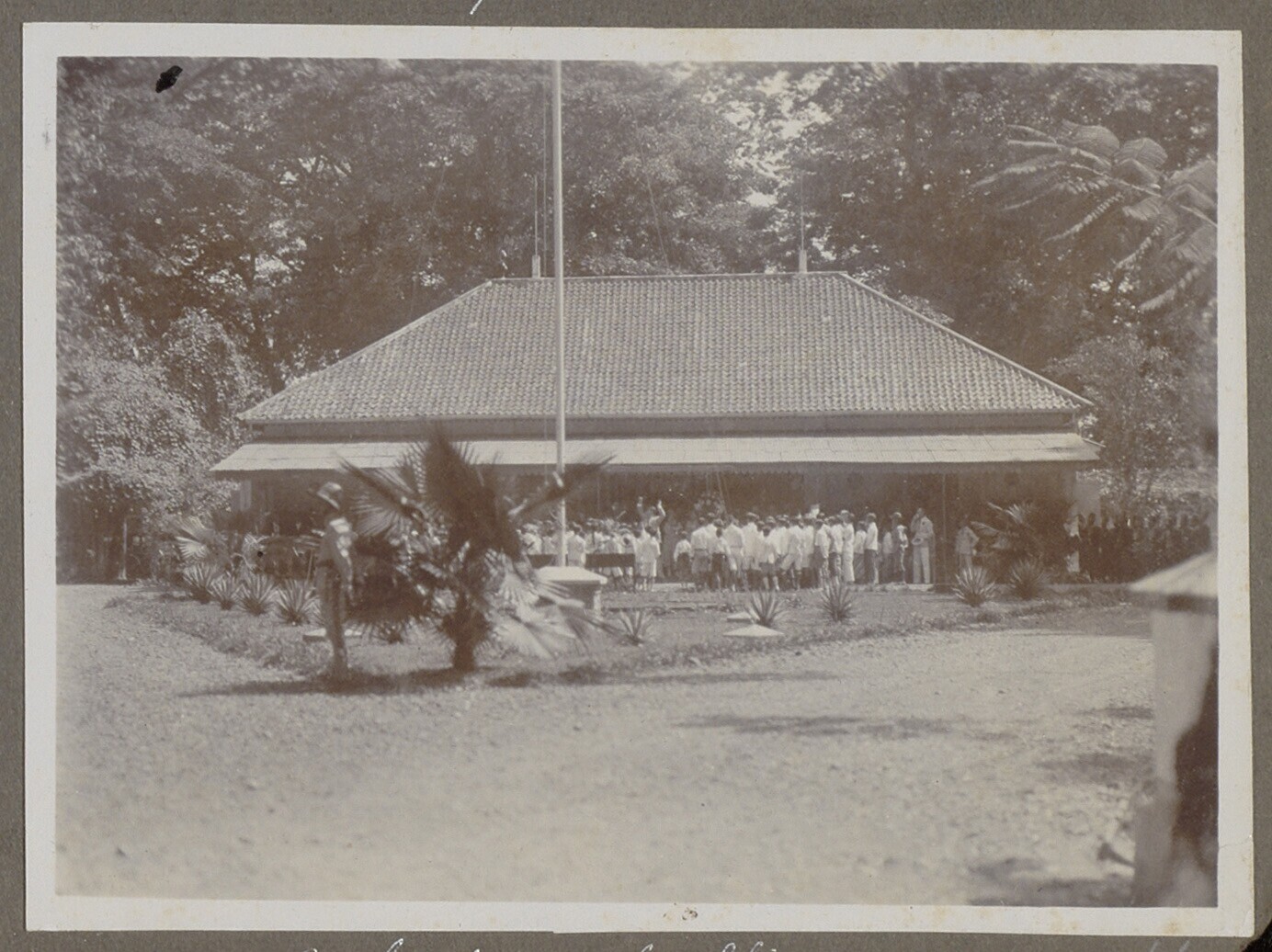 Javaanse jongemannen voor een barak