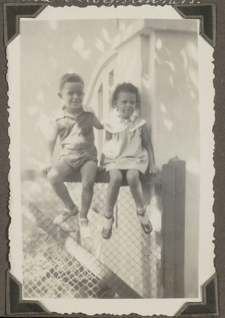 Twee Europese kinderen op een hek