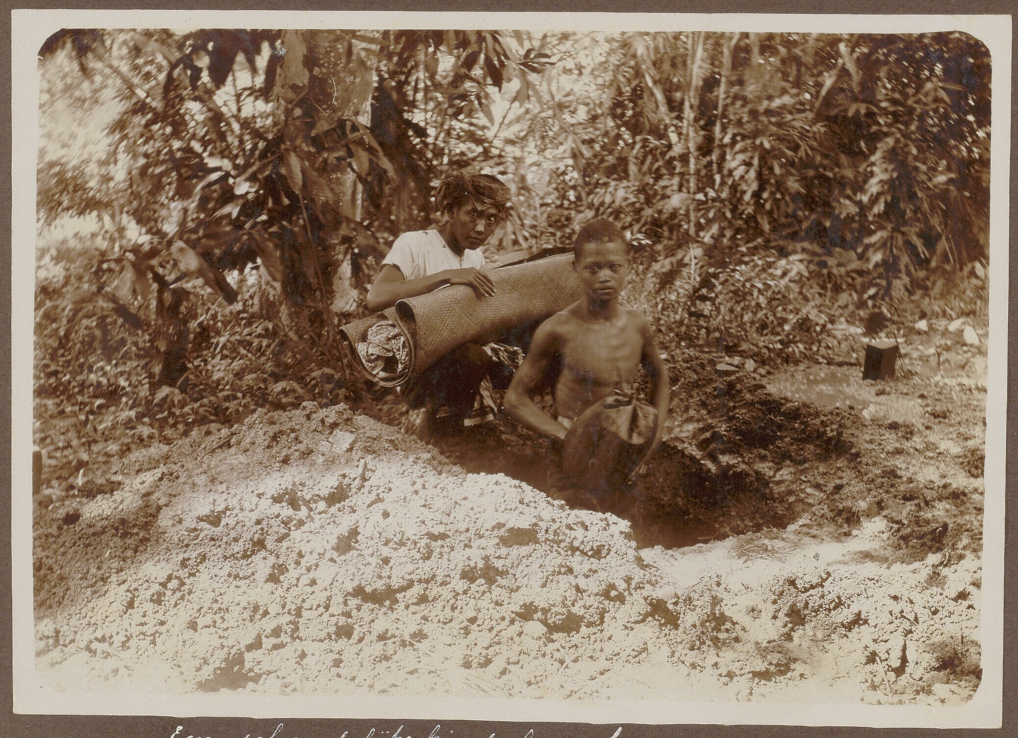 Twee Javaanse mannen hebben een graf gegraven en leg...