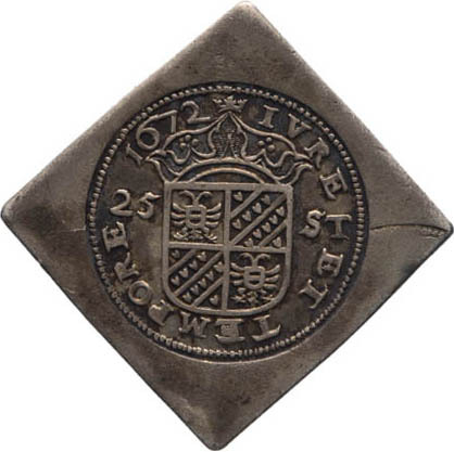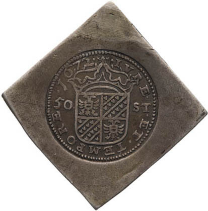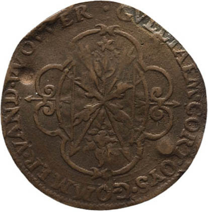 Kwart stuiver (noodmunt) [vervalsing] uit Woerden