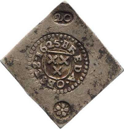 Twintig stuiver (noodmunt) uit Breda, tijdens de bel...
