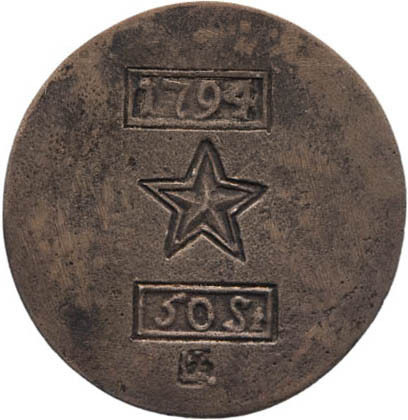 Vijftig stuiver (noodmunt) uit Groningen en Ommelanden