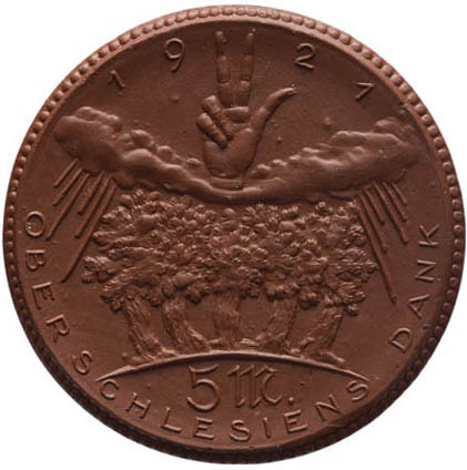 Vijf mark uit Opper-Silezië van Böttger-steengoed