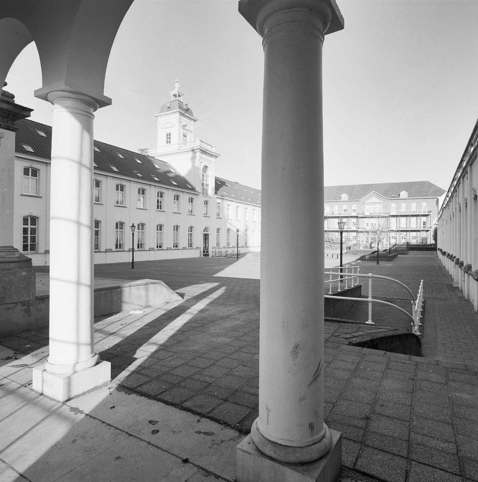Links de Aloysiusbouw, en rechts daarvan op de achte...