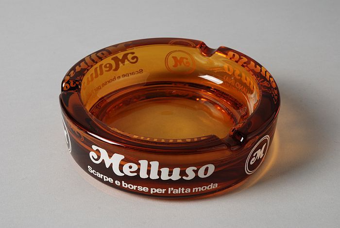 Ronde glazen asbak met "Melluso ..."