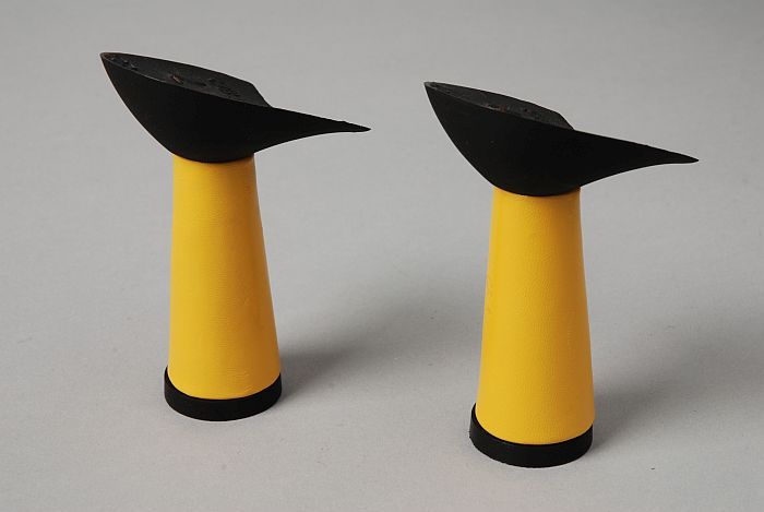 Etalagemateriaal, twee gele hakken voor etalage Corbeau