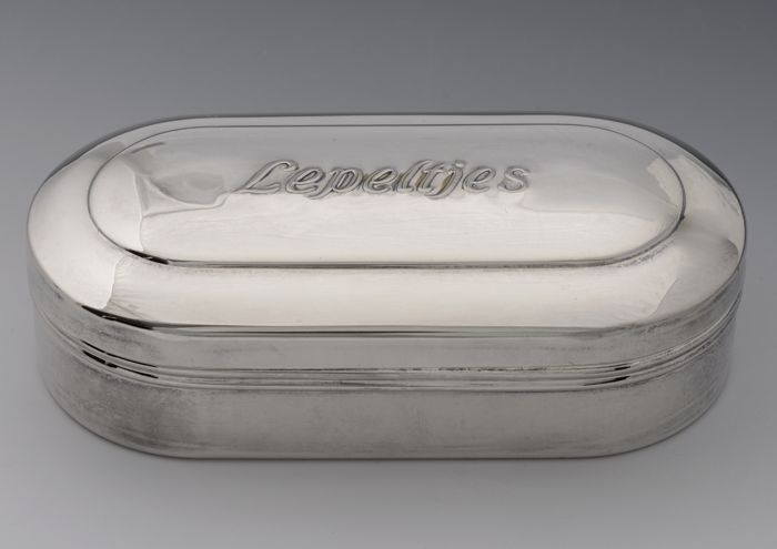 Verzilverd lepeldoosje (A) met deksel (B) van Van Nelle