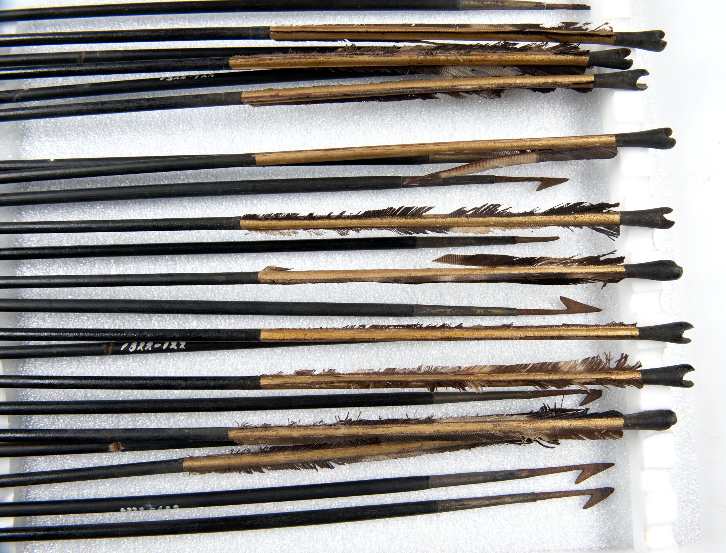 Leren pijlkoker met draagband en een bundel pijlen