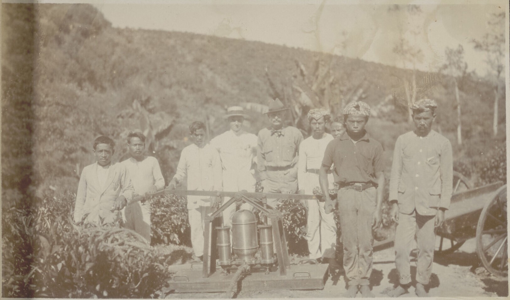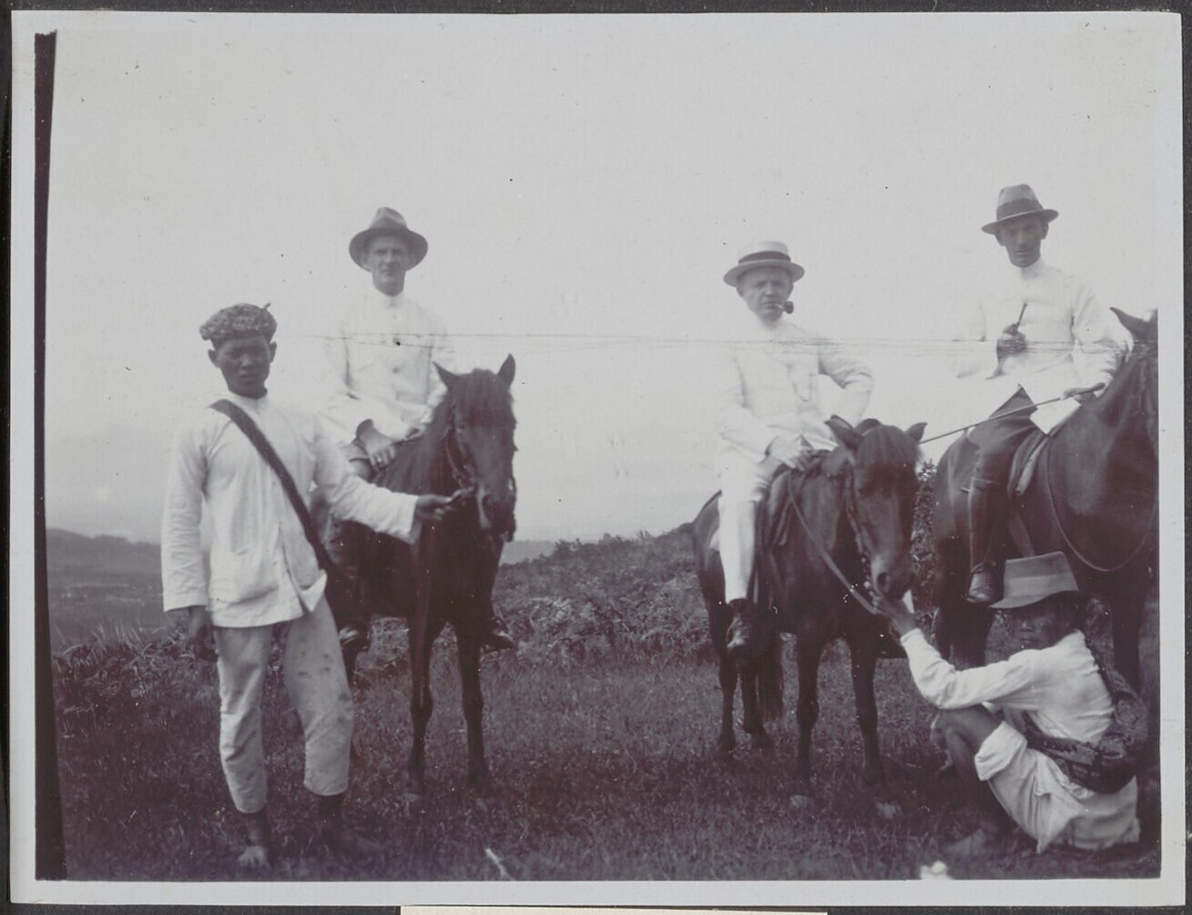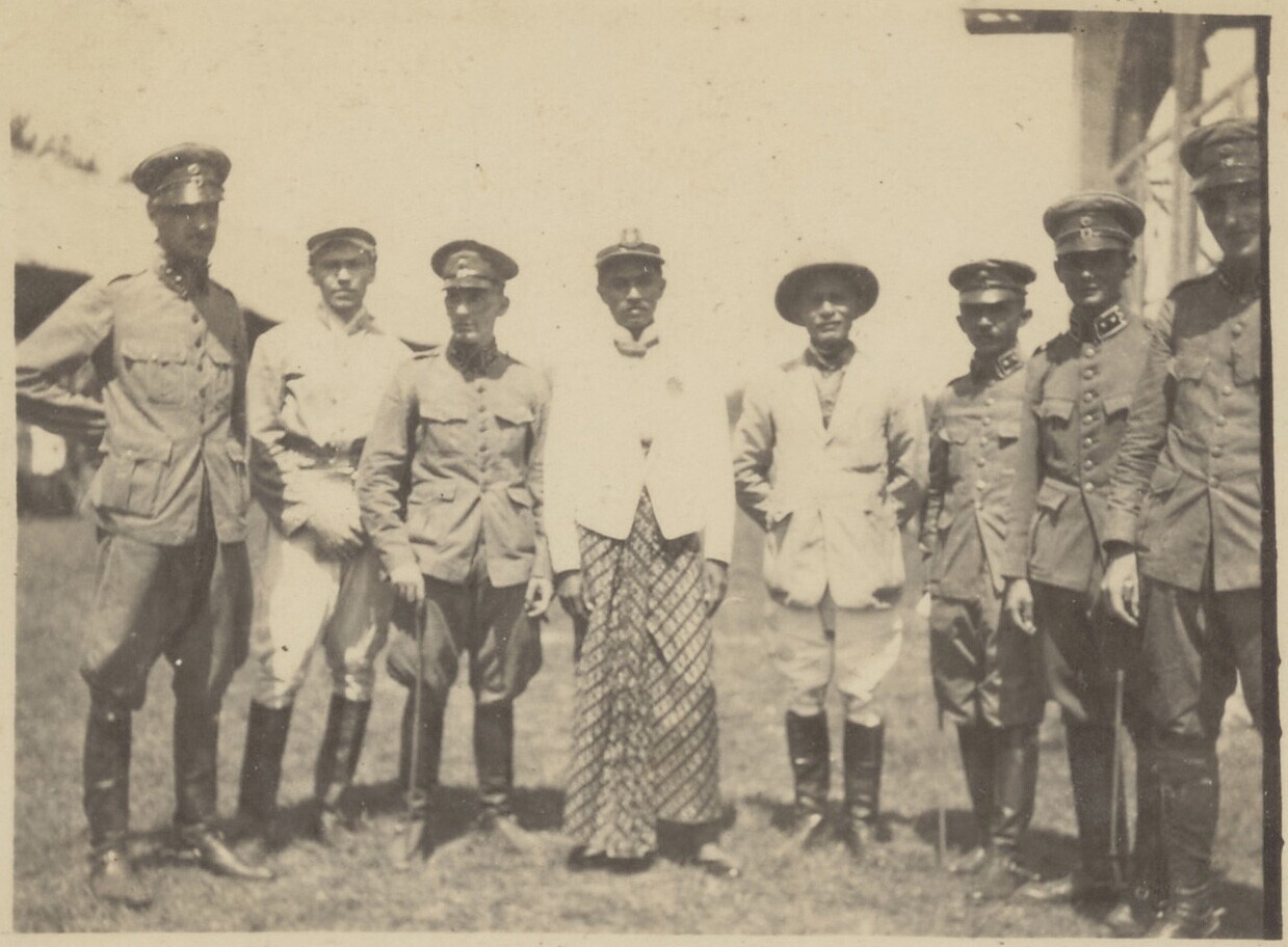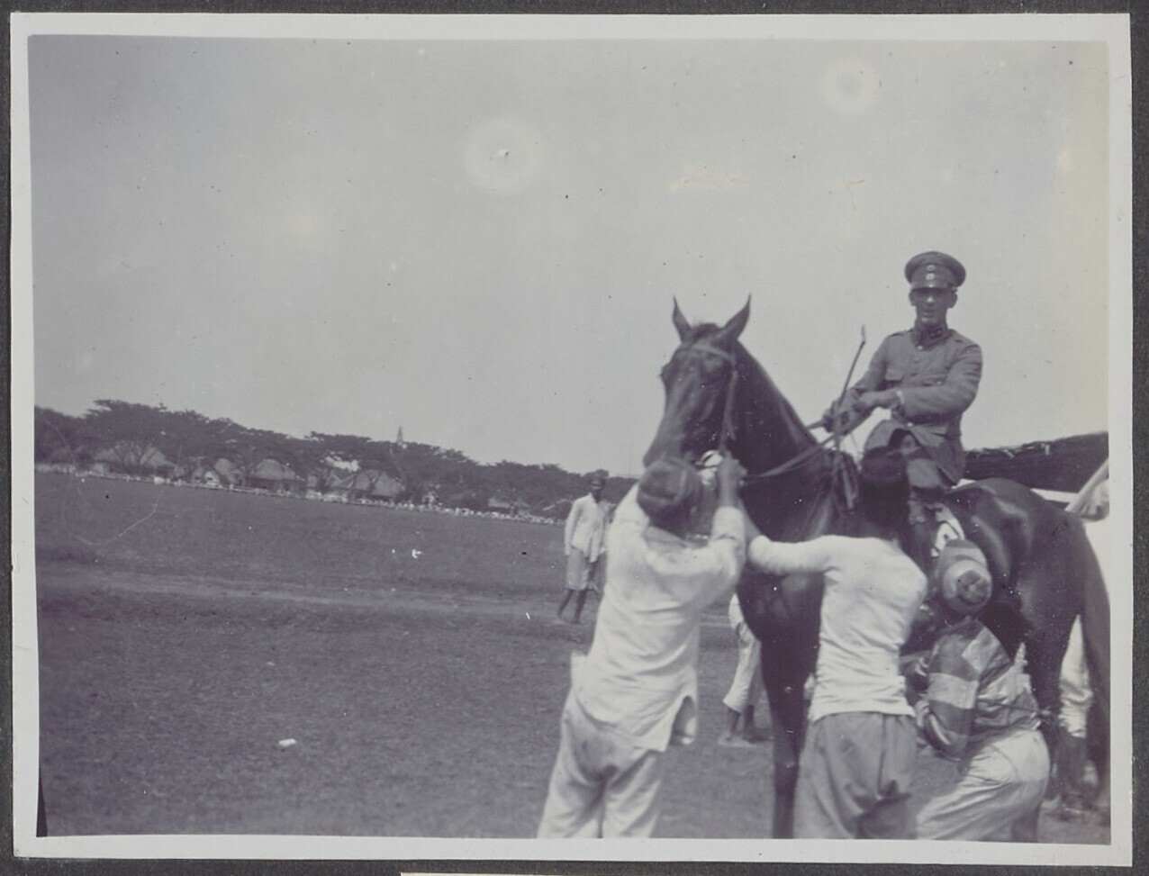 Enkele Javaanse mannen en een Nederlandse ruiter rus...