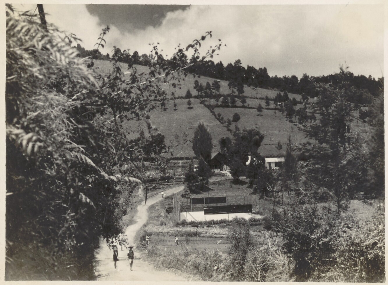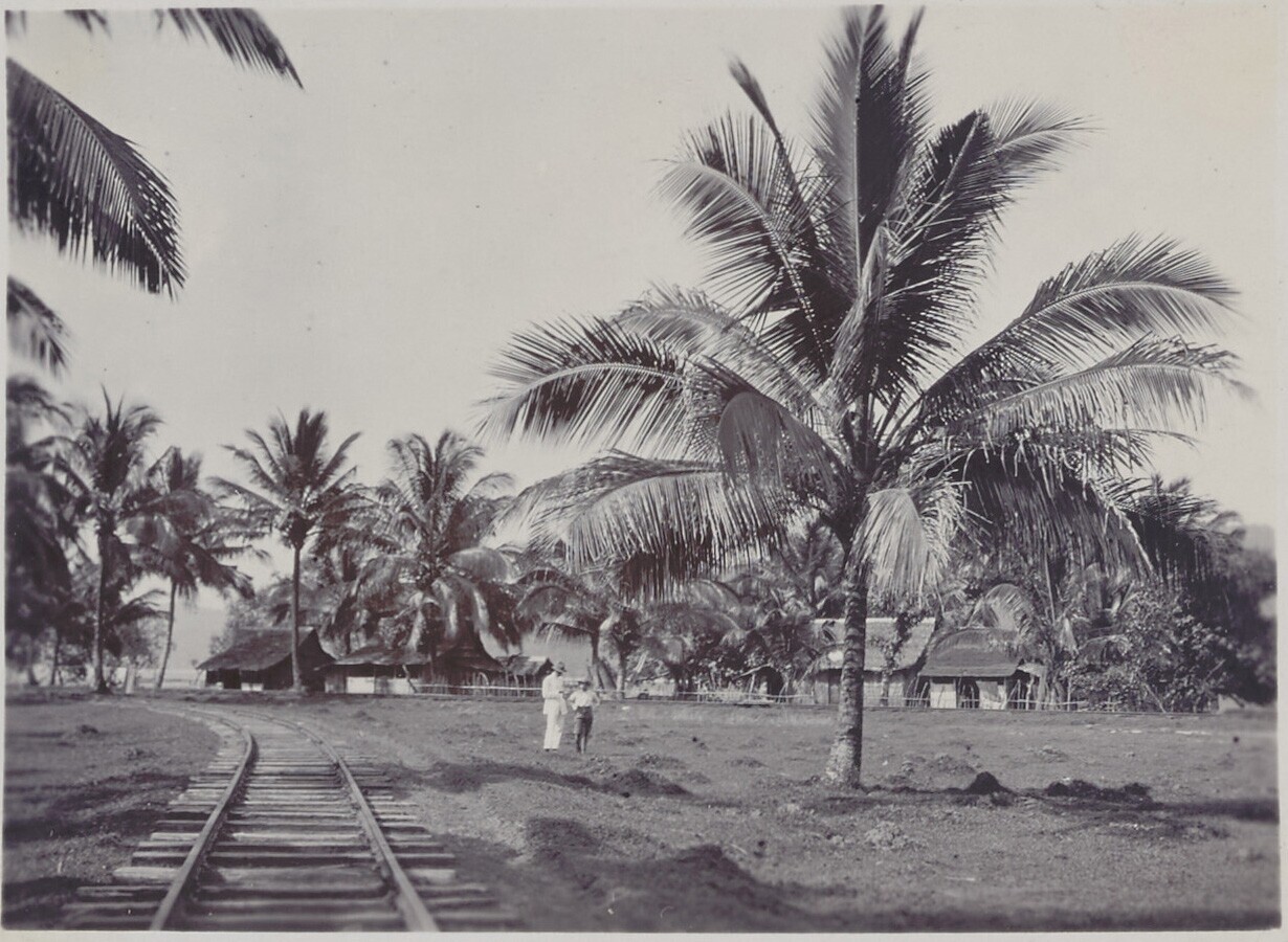 Uitzicht op de spoorbaan bij het dorp Tjilatjap