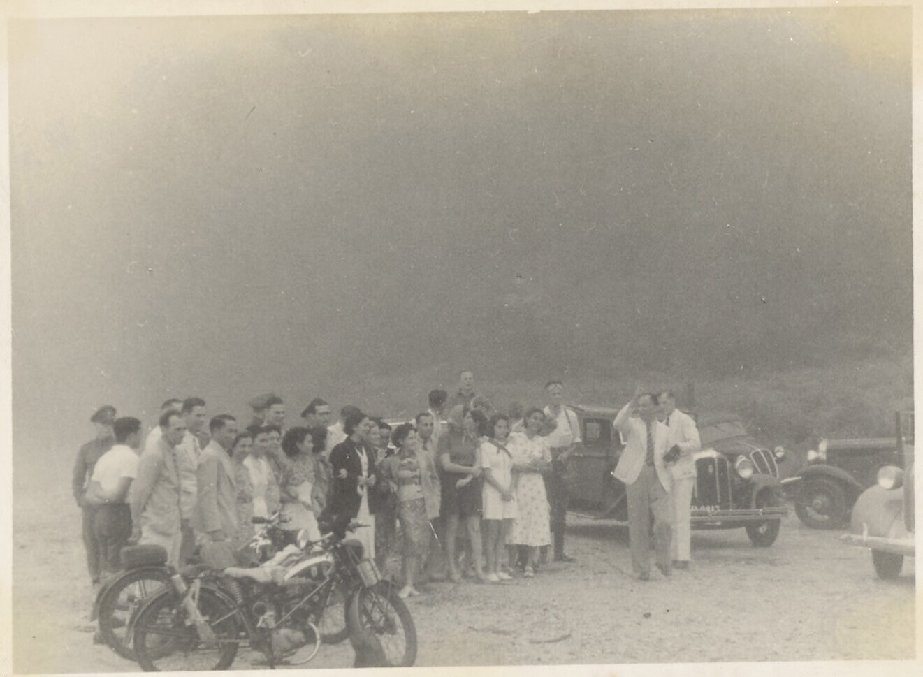 Europese vriendengroep onderweg met auto's en motore...