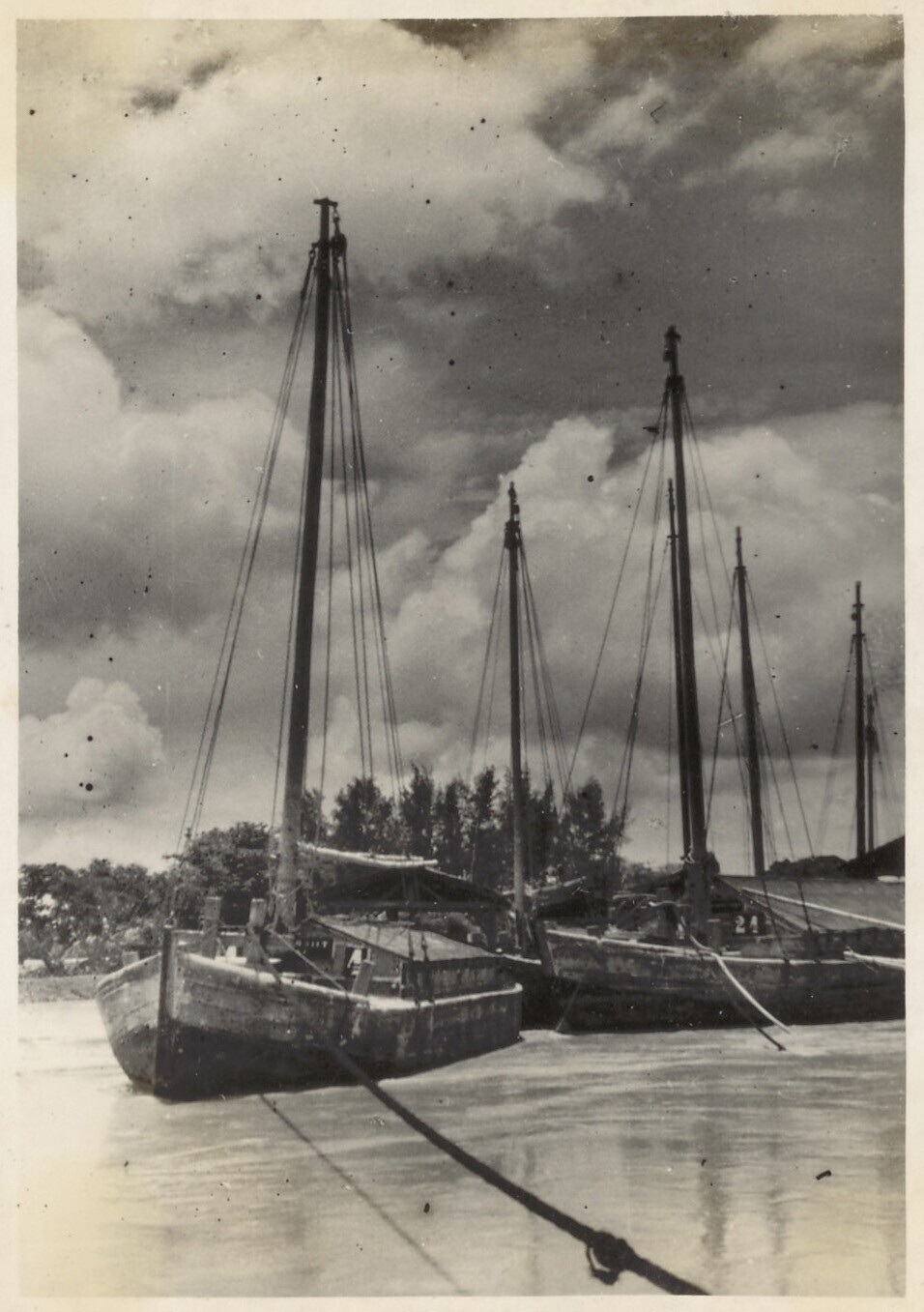 Afgemeerde Javaanse vrachtschepen te Indramajoe