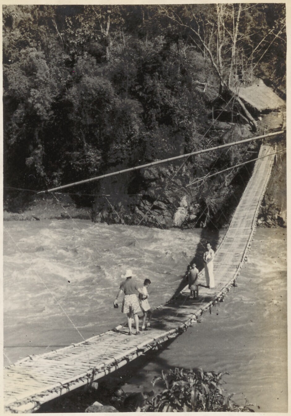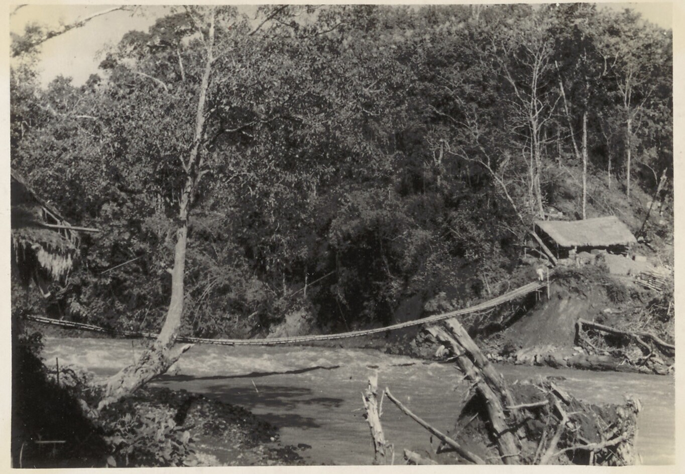 Hangbrug over de rivier bij Tjimanoek