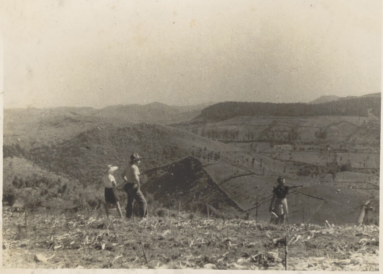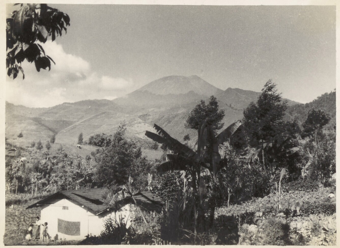 Europees / Javaanse familie op akker bij vallei te I...