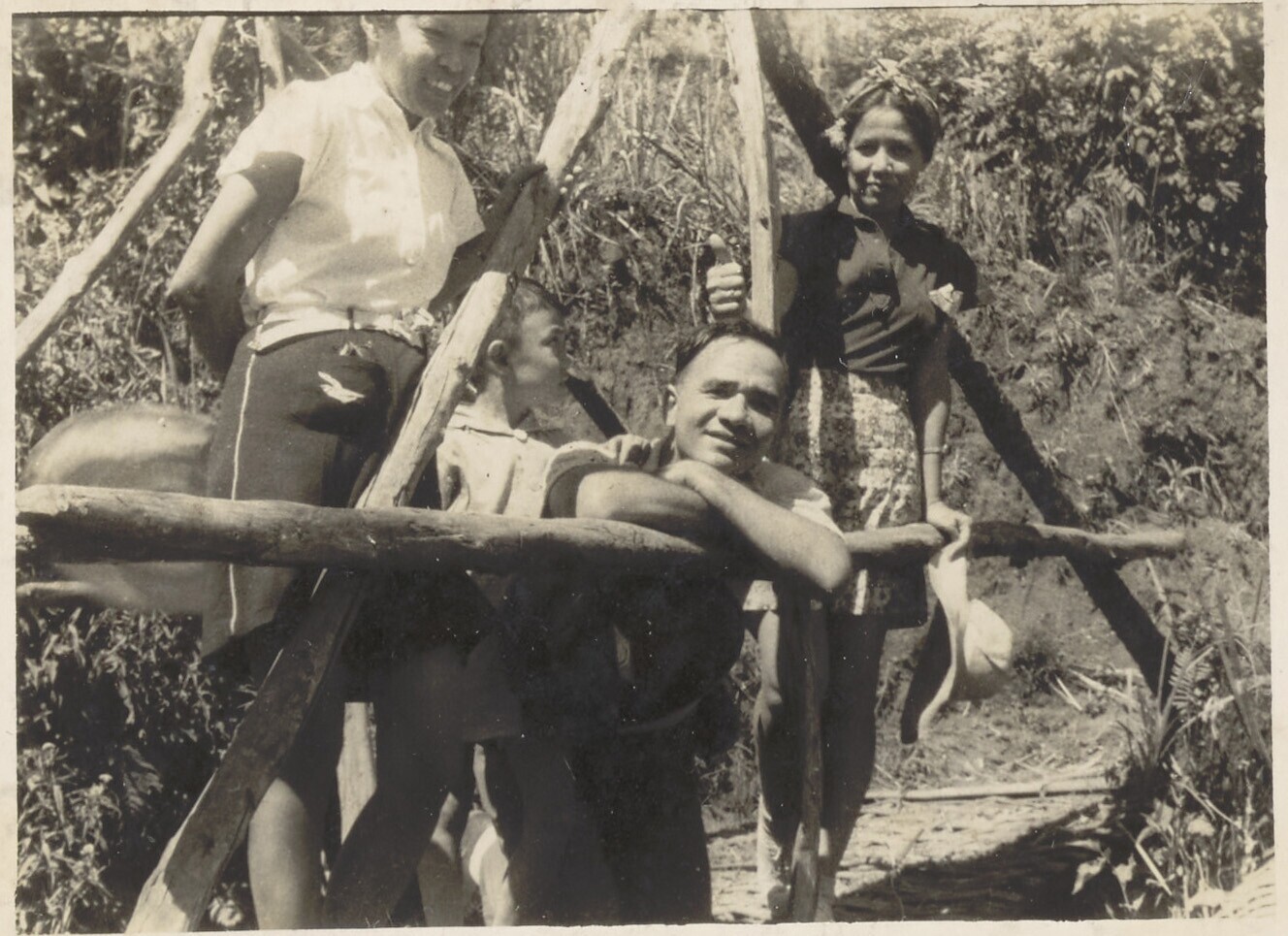 Europees / Javaanse familie in het bos bij Igerklant...
