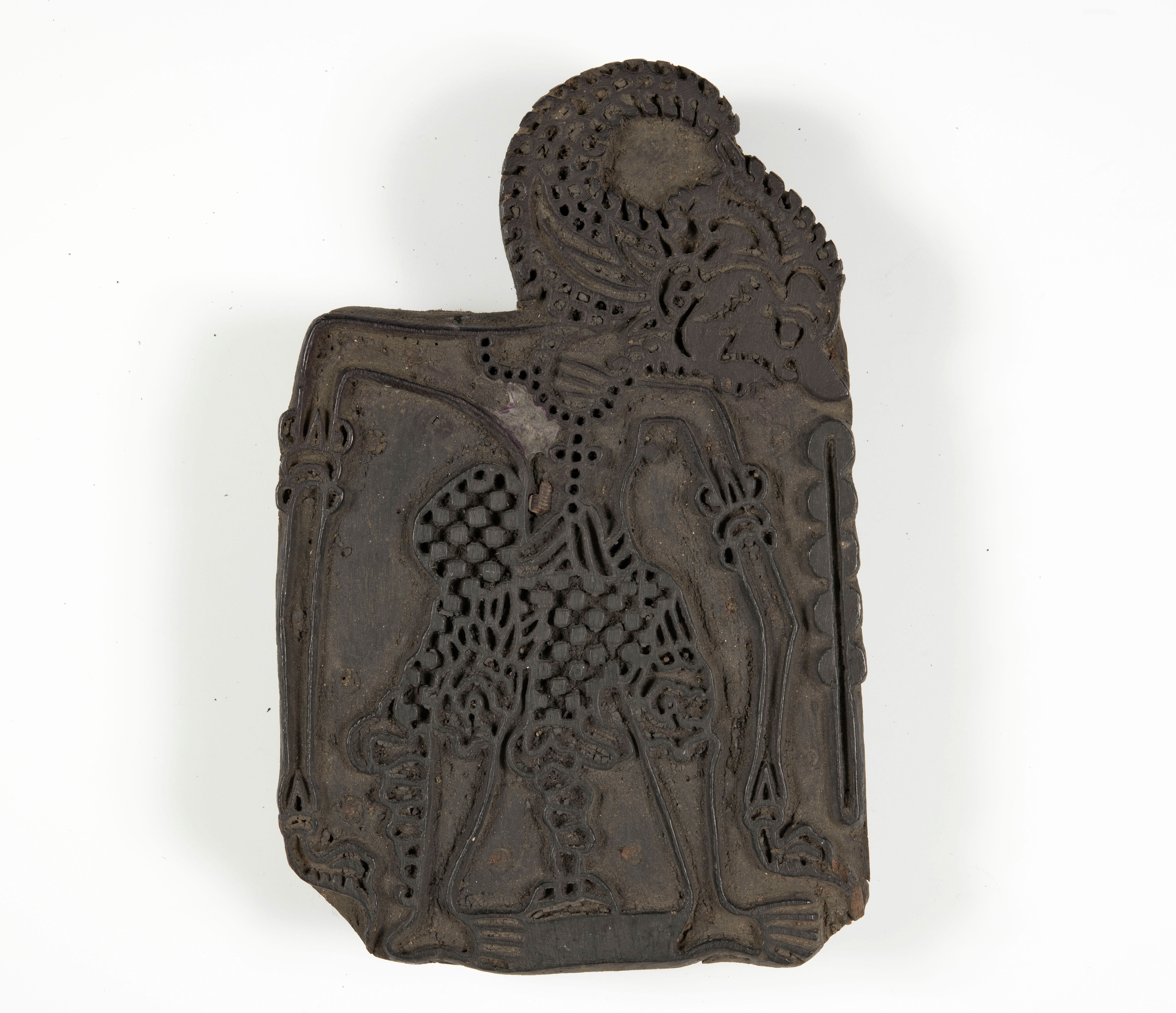 Houten cliché voor het drukken van een wajangfiguur ...