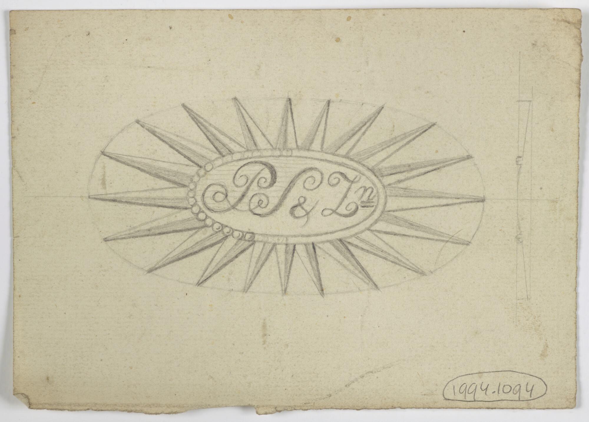 Tekening van een naambord met initialen PS & Zn