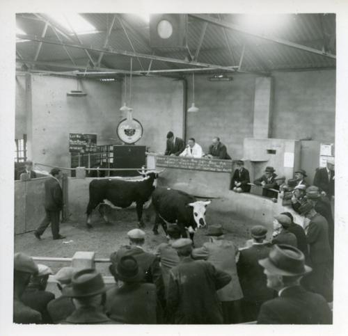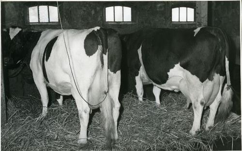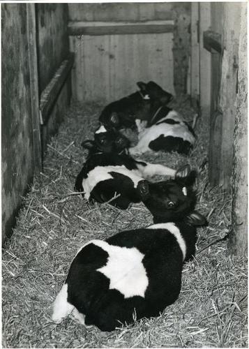 Foto in zwart-wit van kalveren in een hok door J.D. ...