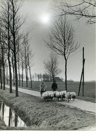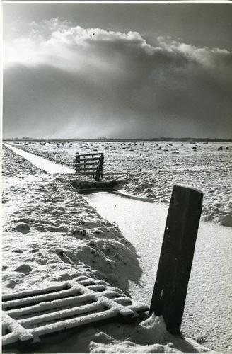 Foto in zwart-wit van ondergelopen land door J.D. de...
