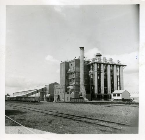 Foto in zwart-wit van een turffabriek te Ierland, 1962
