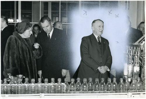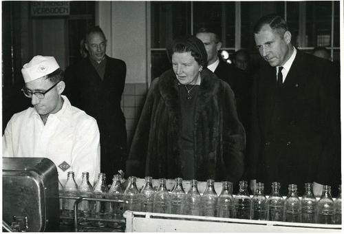 Foto in zwart-wit van een bezoek van H.M. Koningin J...