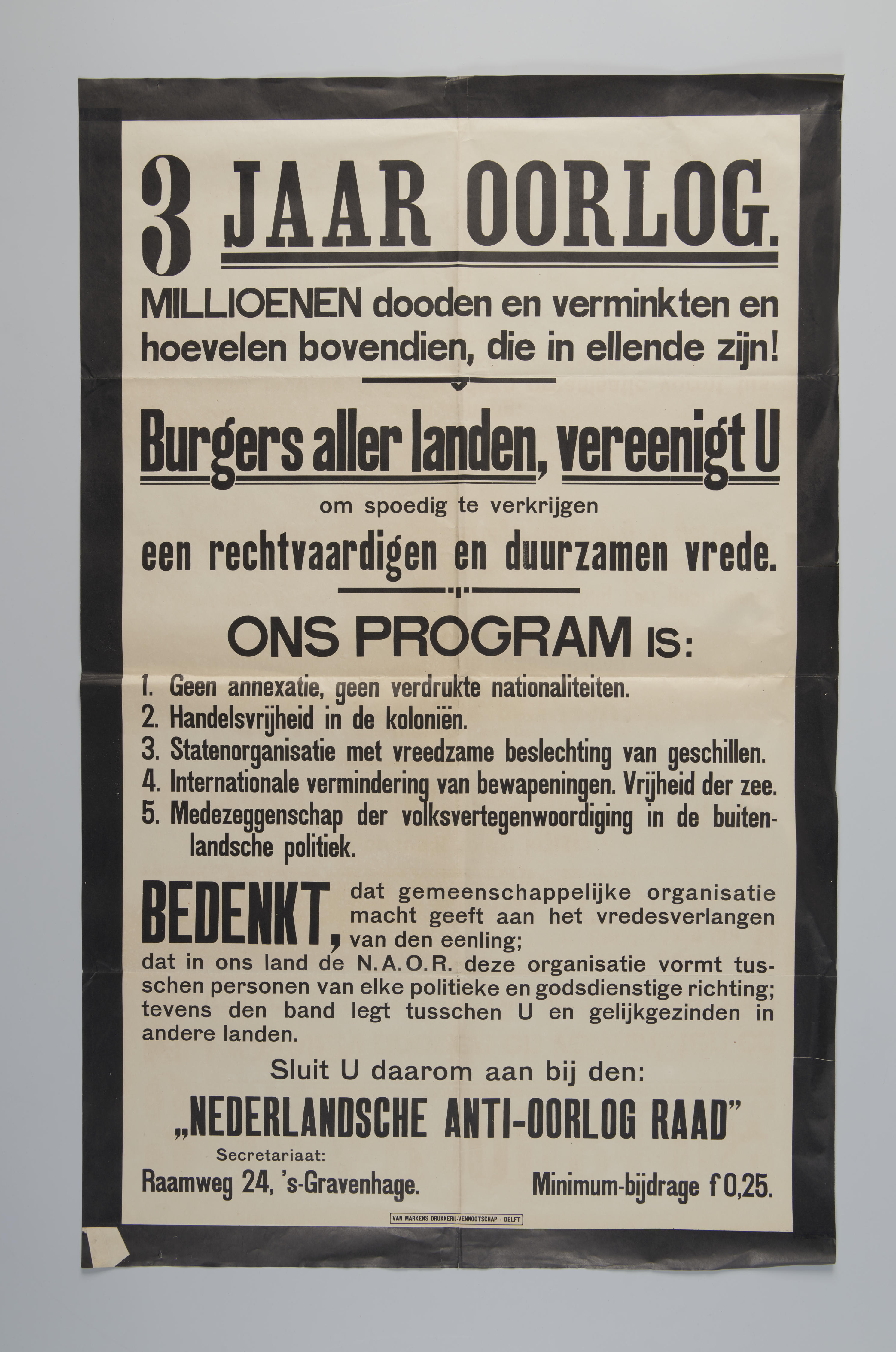 Affiche tegen de Eerste Wereldoorlog, gedrukt in Del...