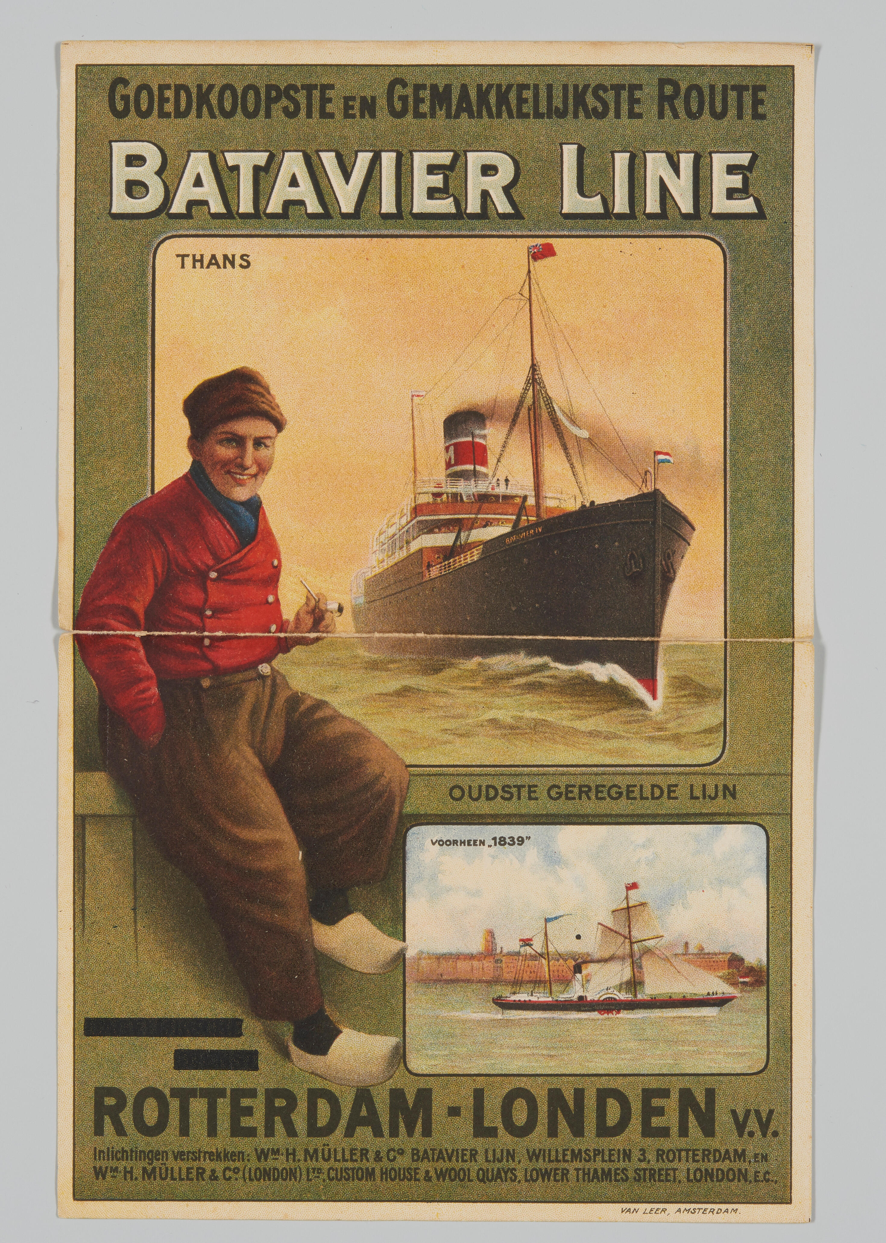 Affiche van de stoombootdienst van Amsterdam naar Vo...