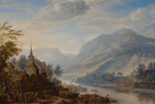 Arcadisch landschap met de genezing van een verlamde...