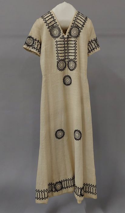 Hippieoutfit: witte knielange damesjurk met V-hals