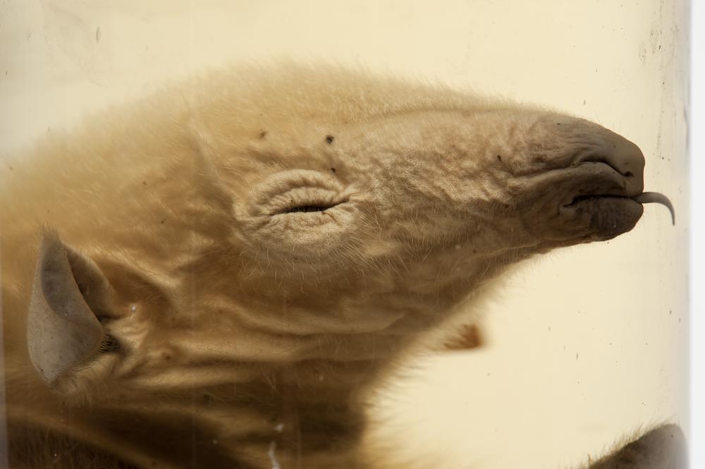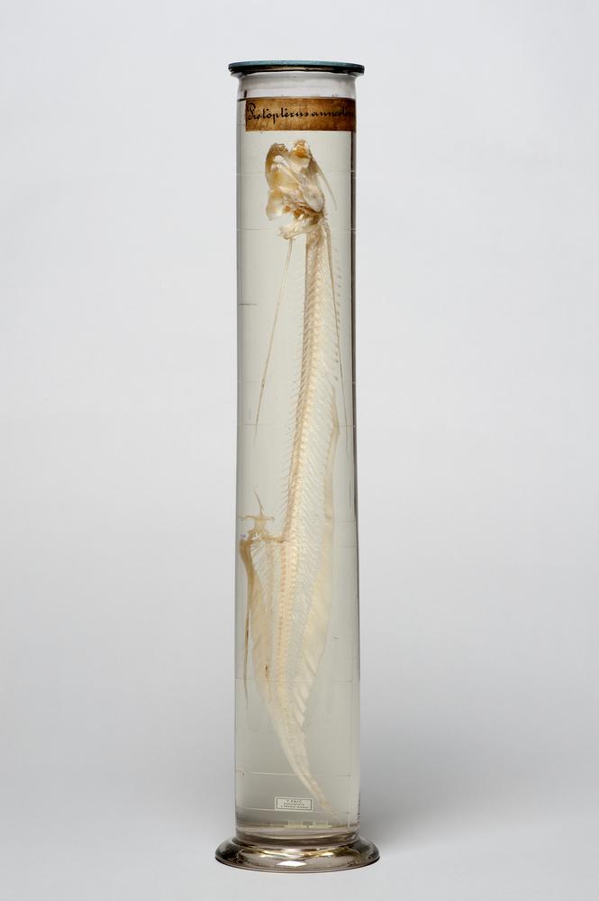 Vloeistofpreparaat van het skelet van de Nijlkwastsnoek