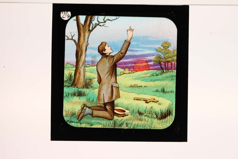 8 toverlantaarnplaatjes met een afbeelding per plaat...