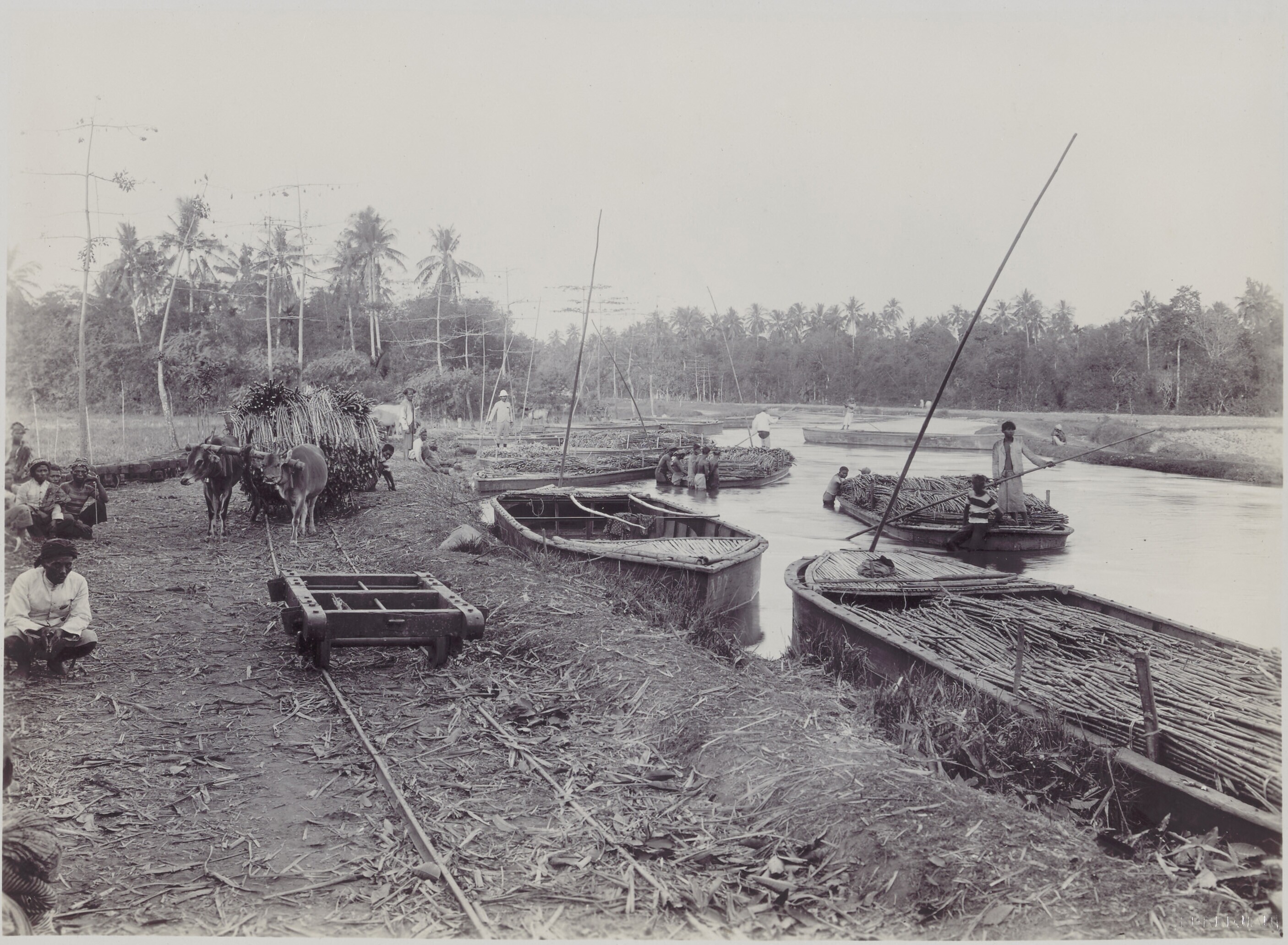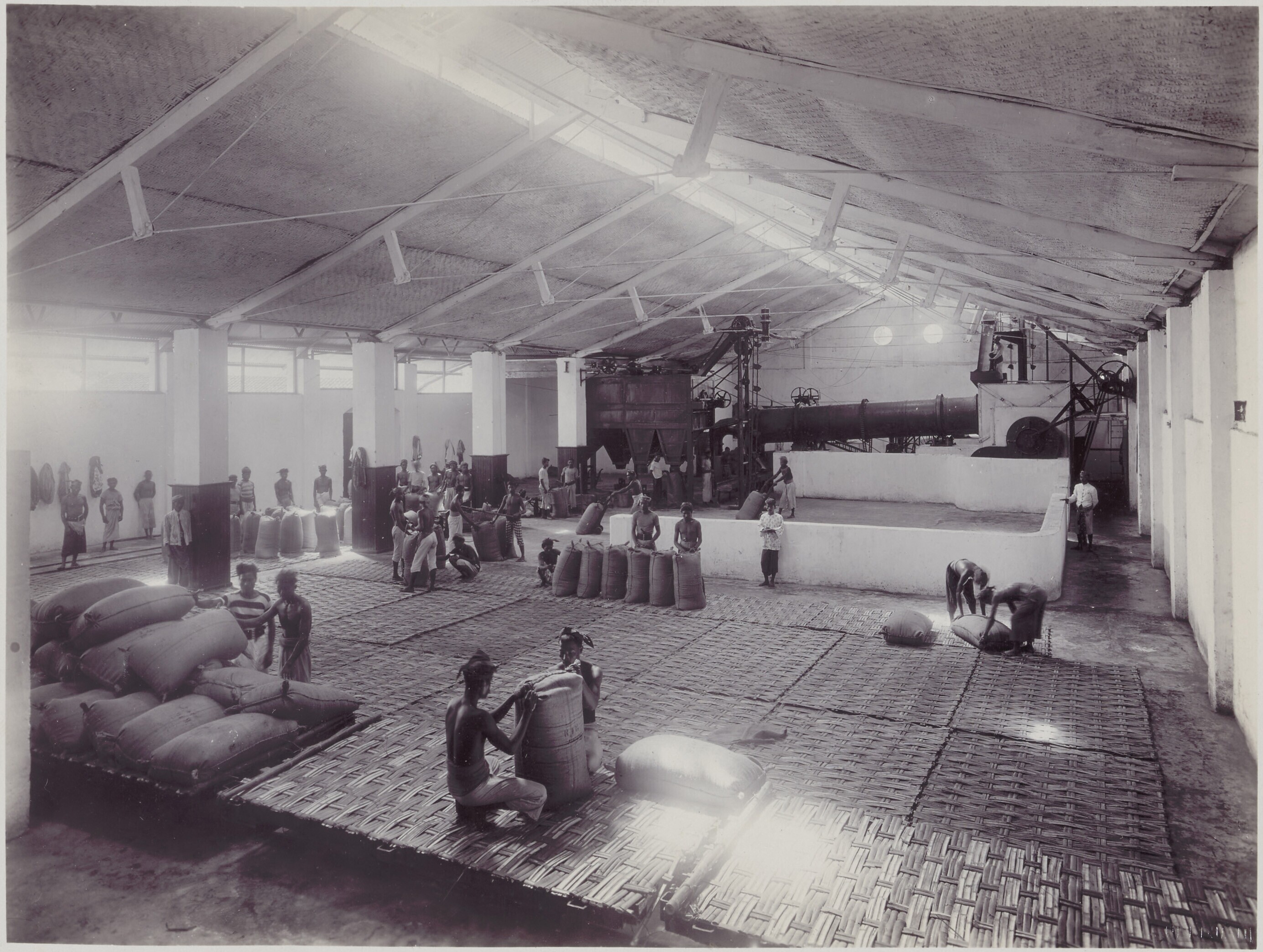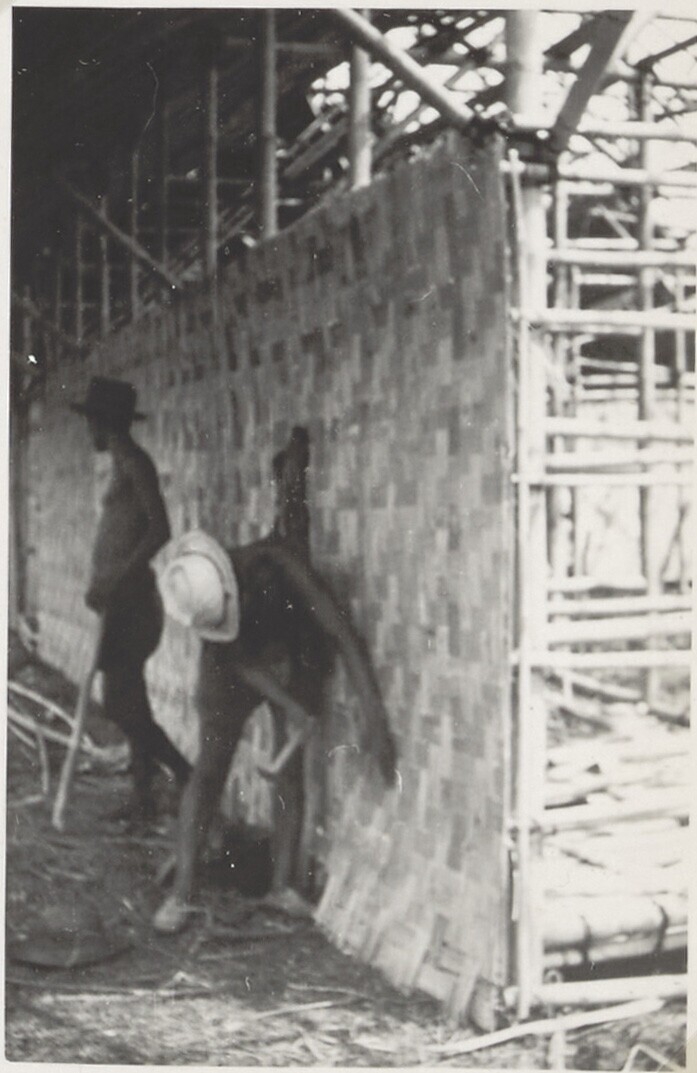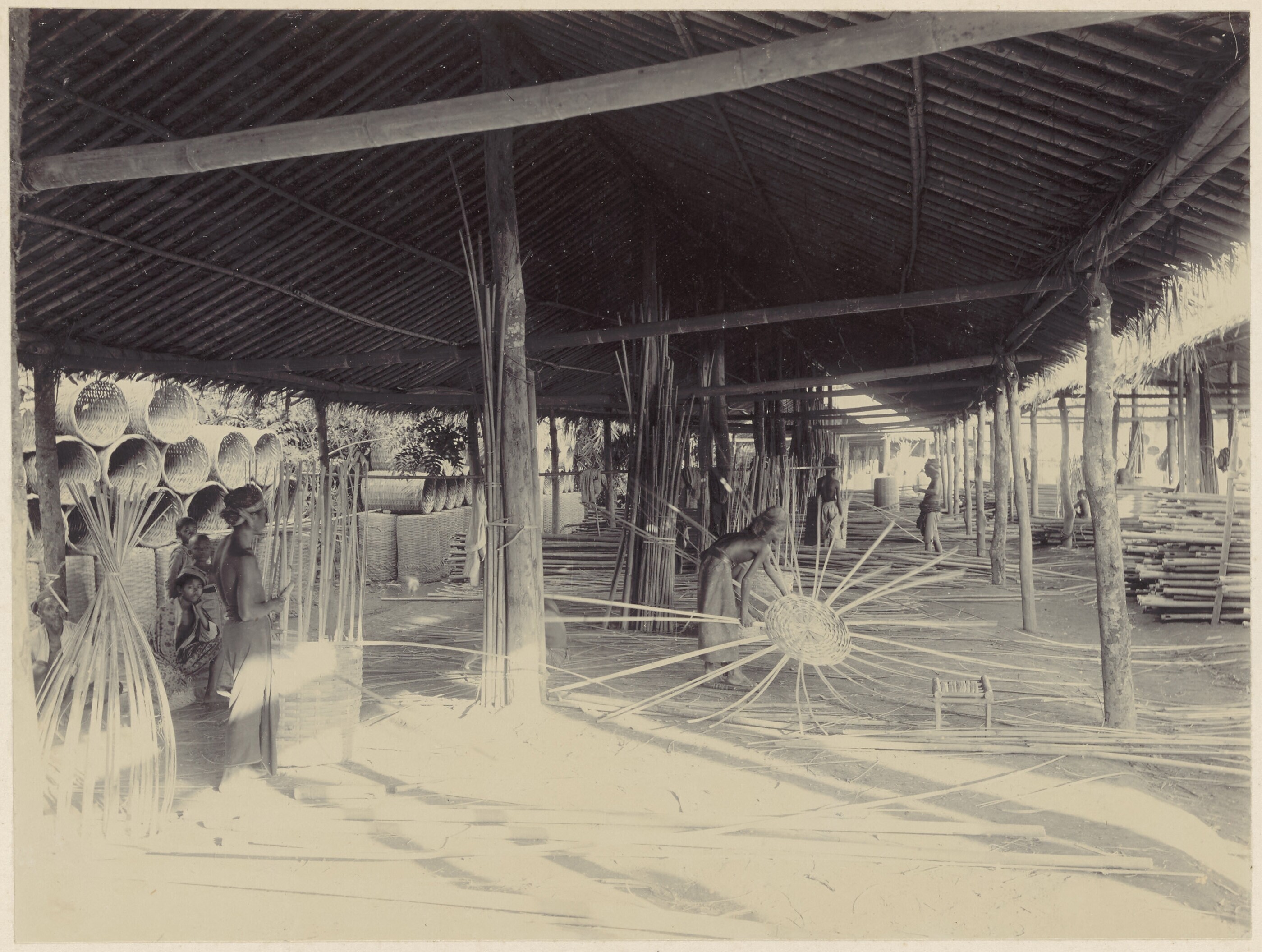 Een mandenvlechterij bij de suikerfabriek Tjomal