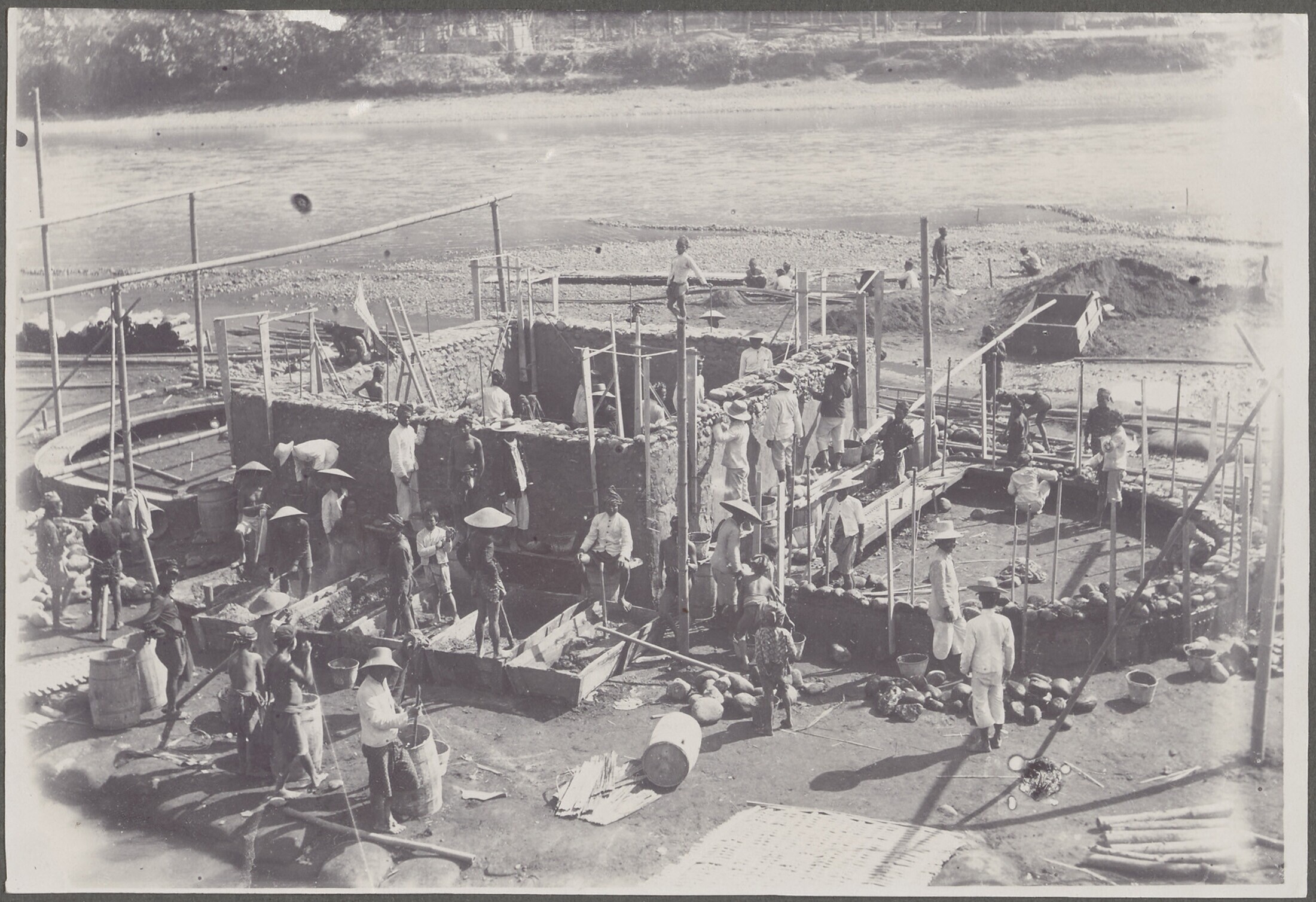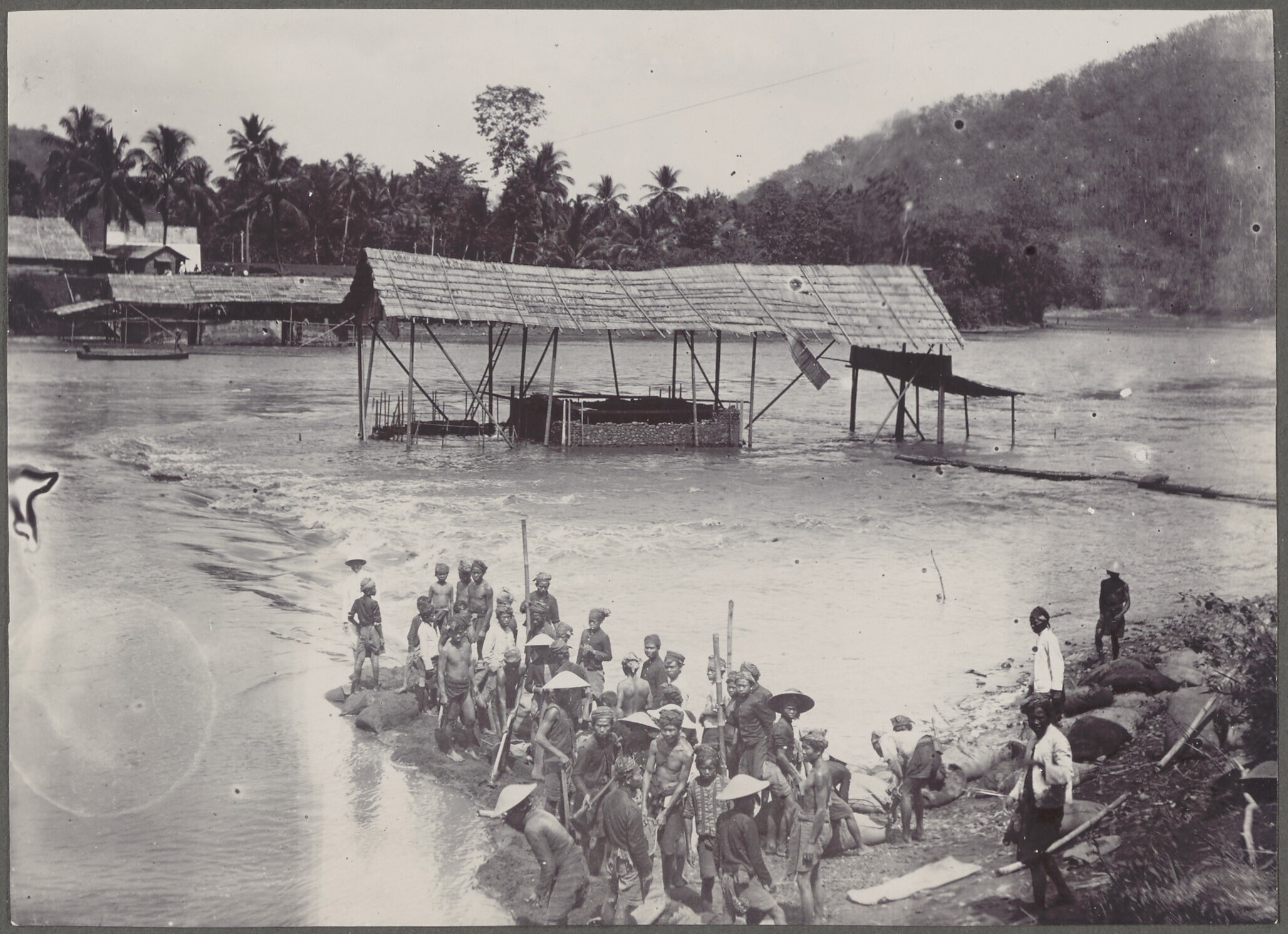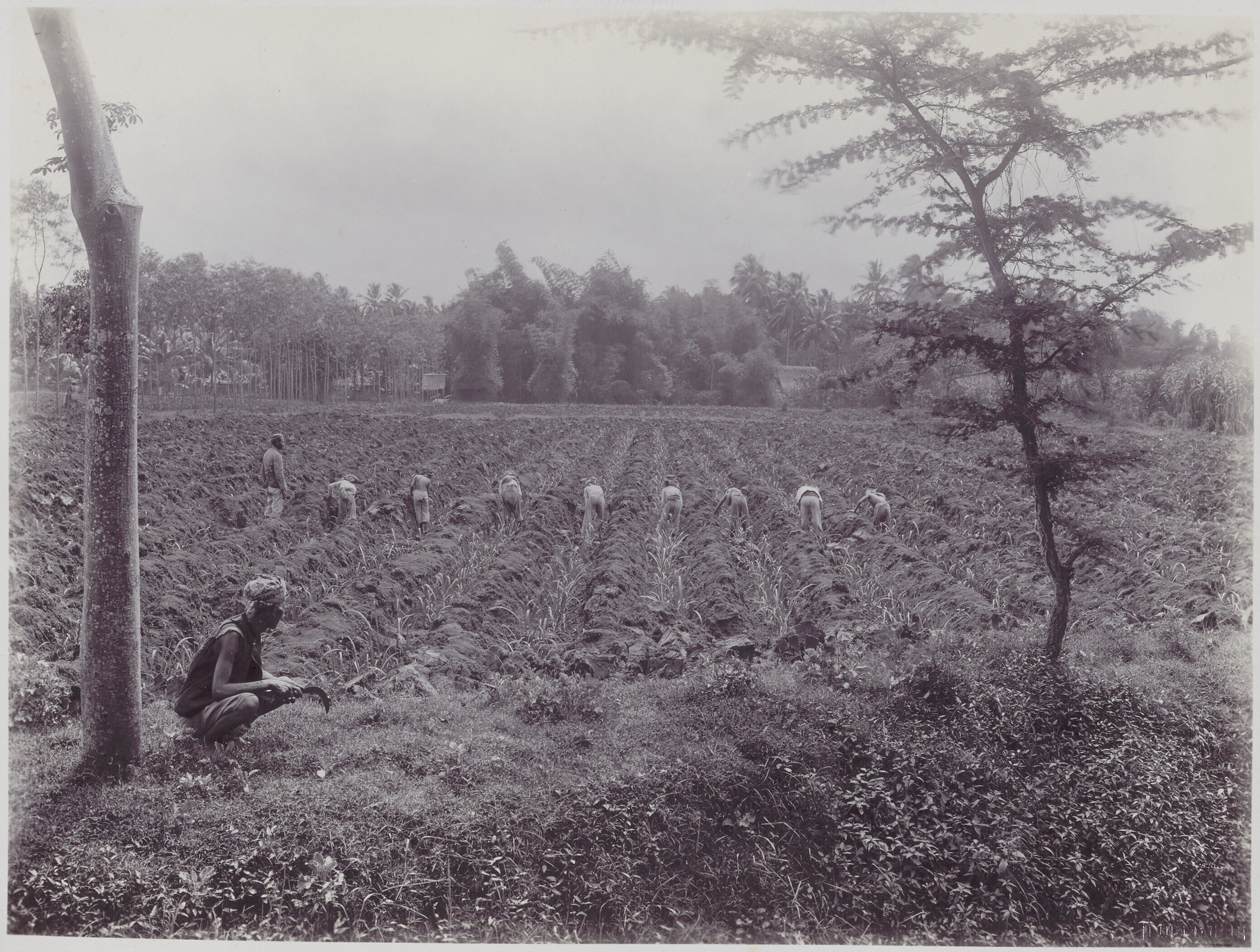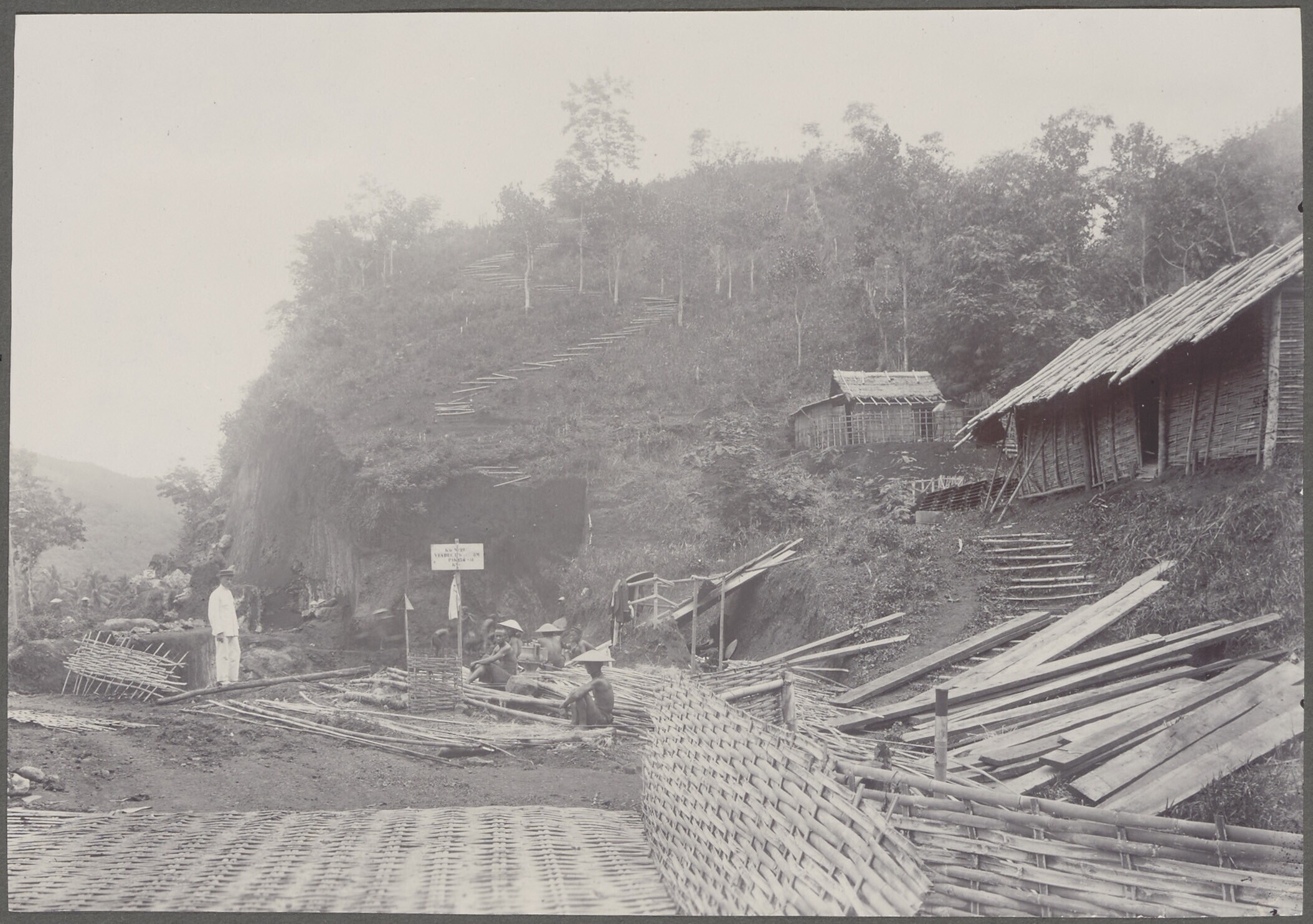 Een mandenvlechterij bij de suikerfabriek Tjomal