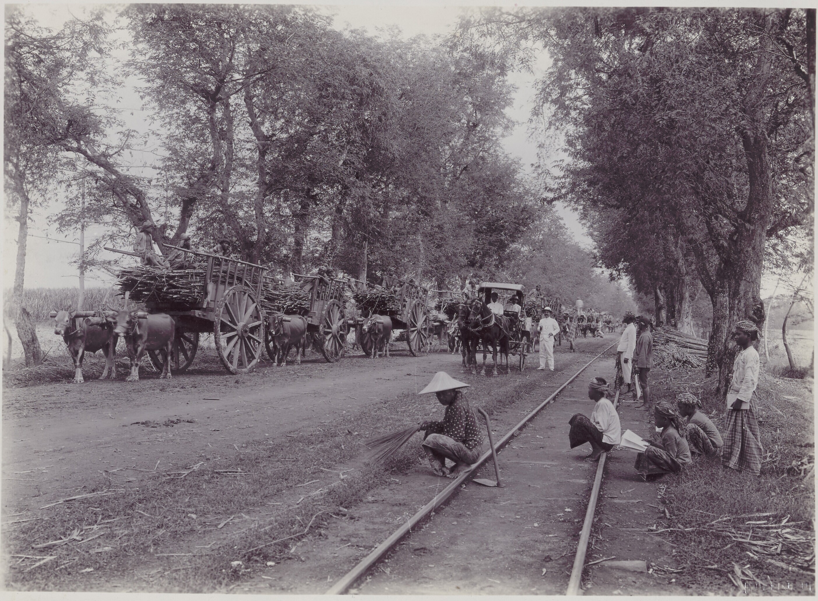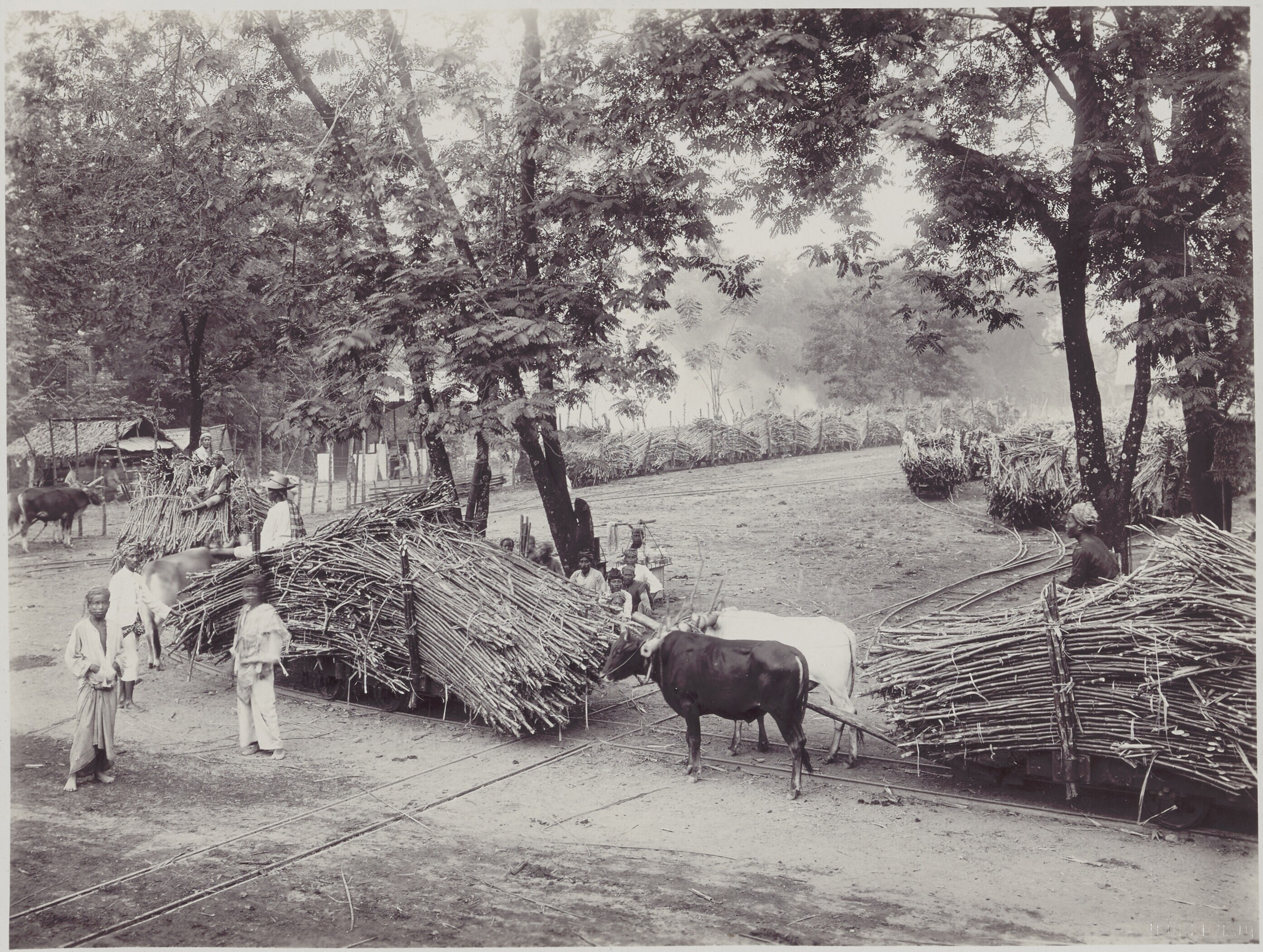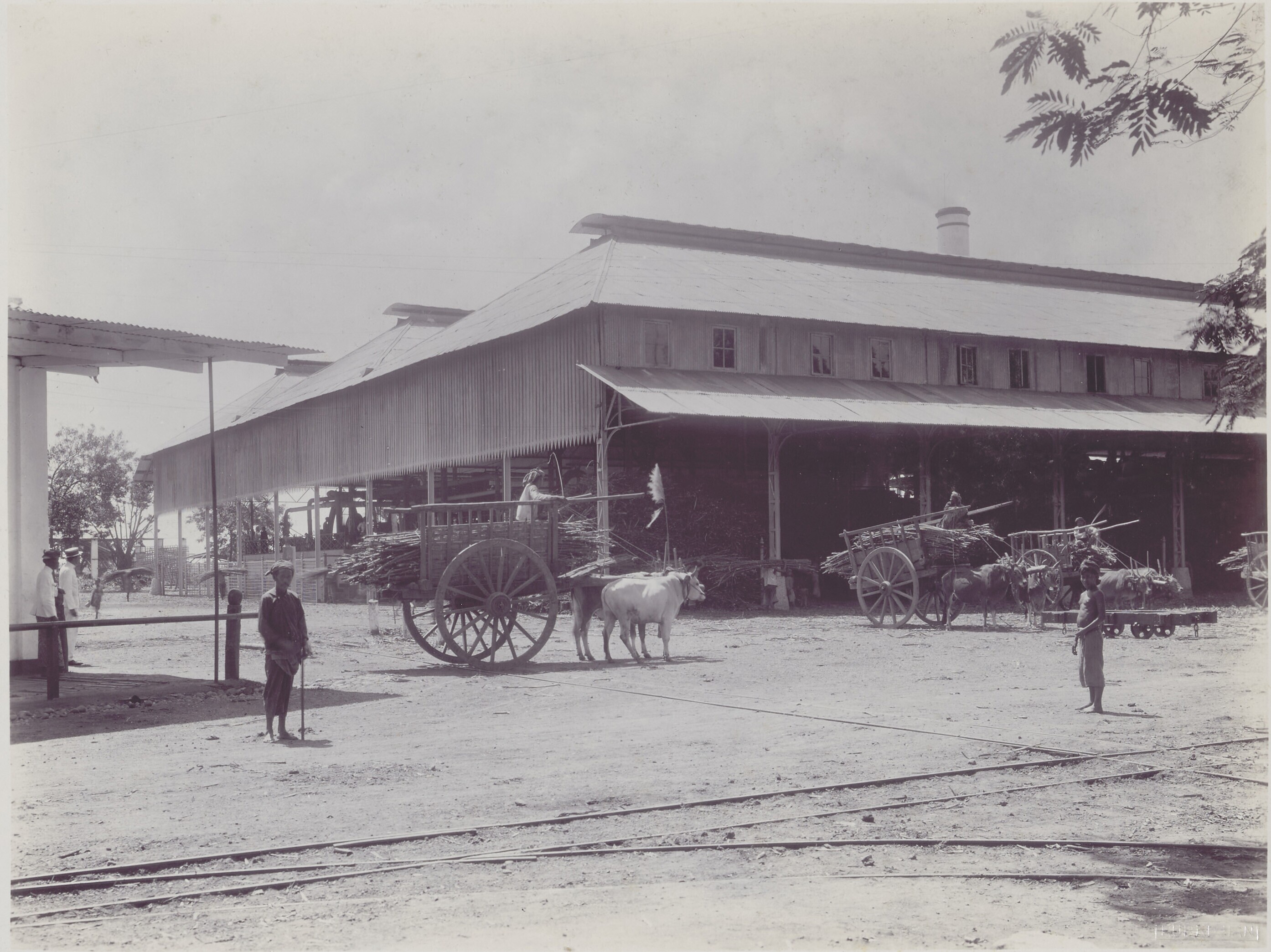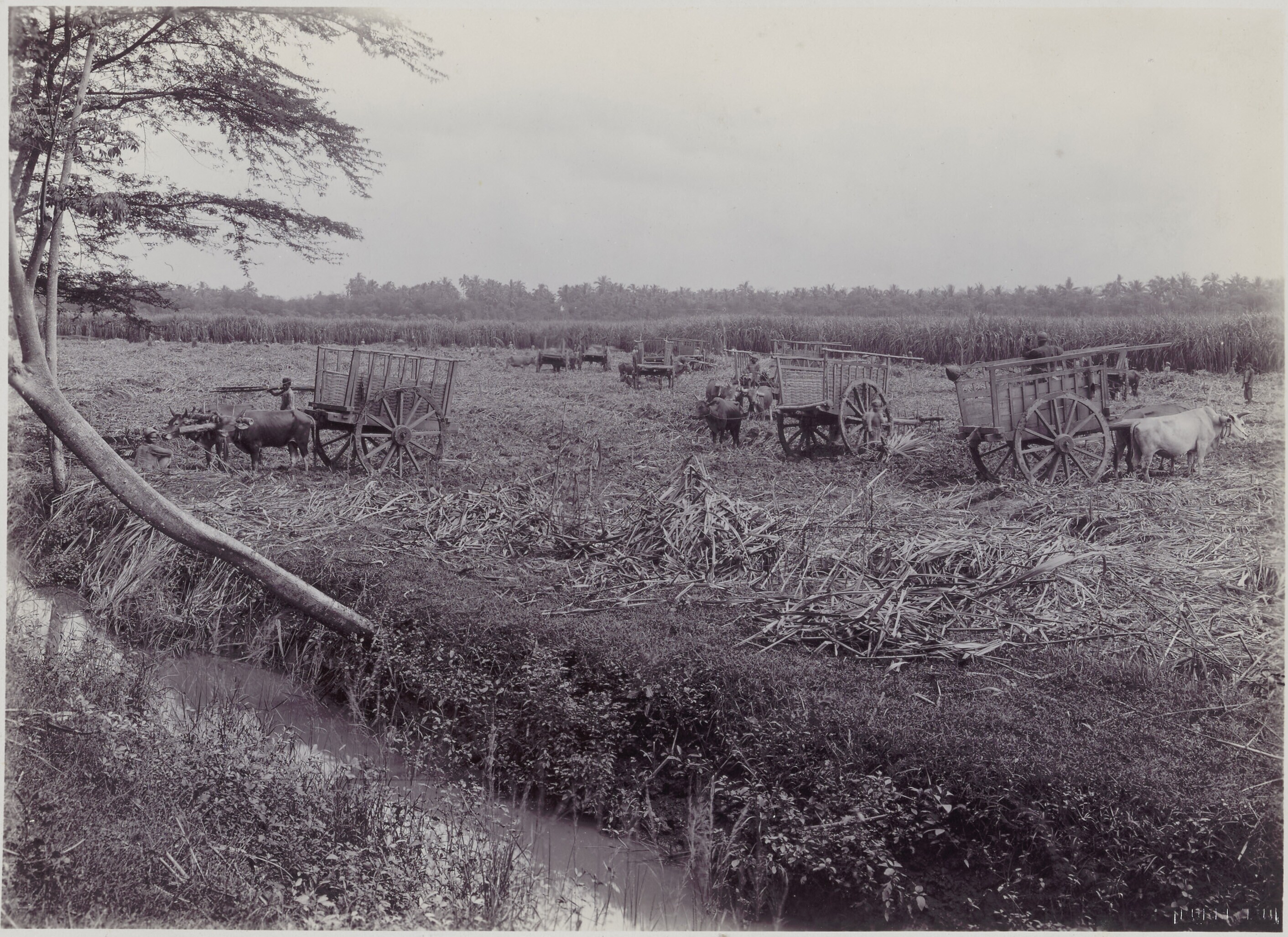 Ox-wagons with sugar cane at the sugar factory Ketegan