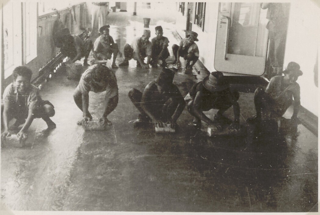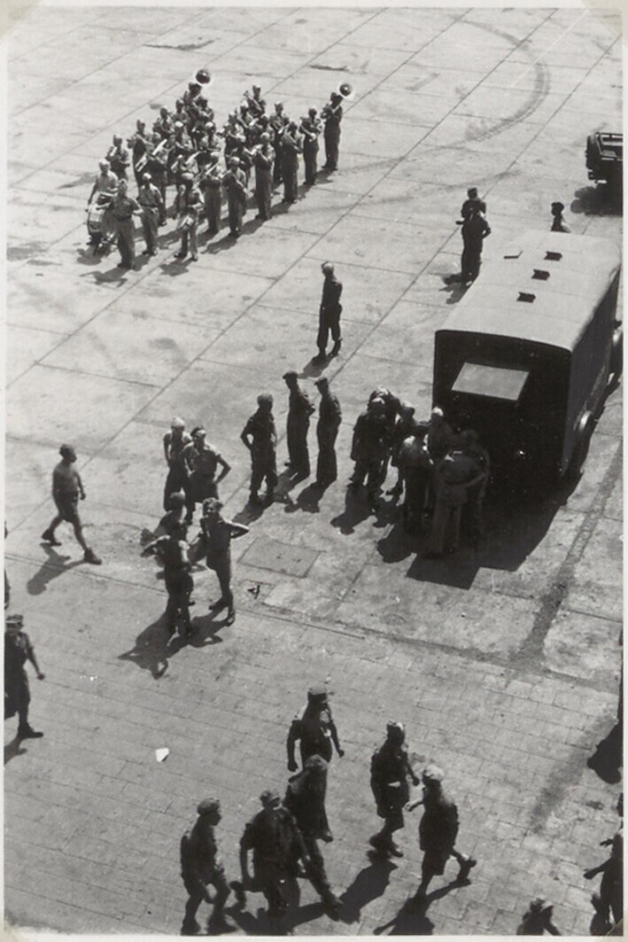 Muziek bij aankomst van het troepenschip ms. Klipfon...